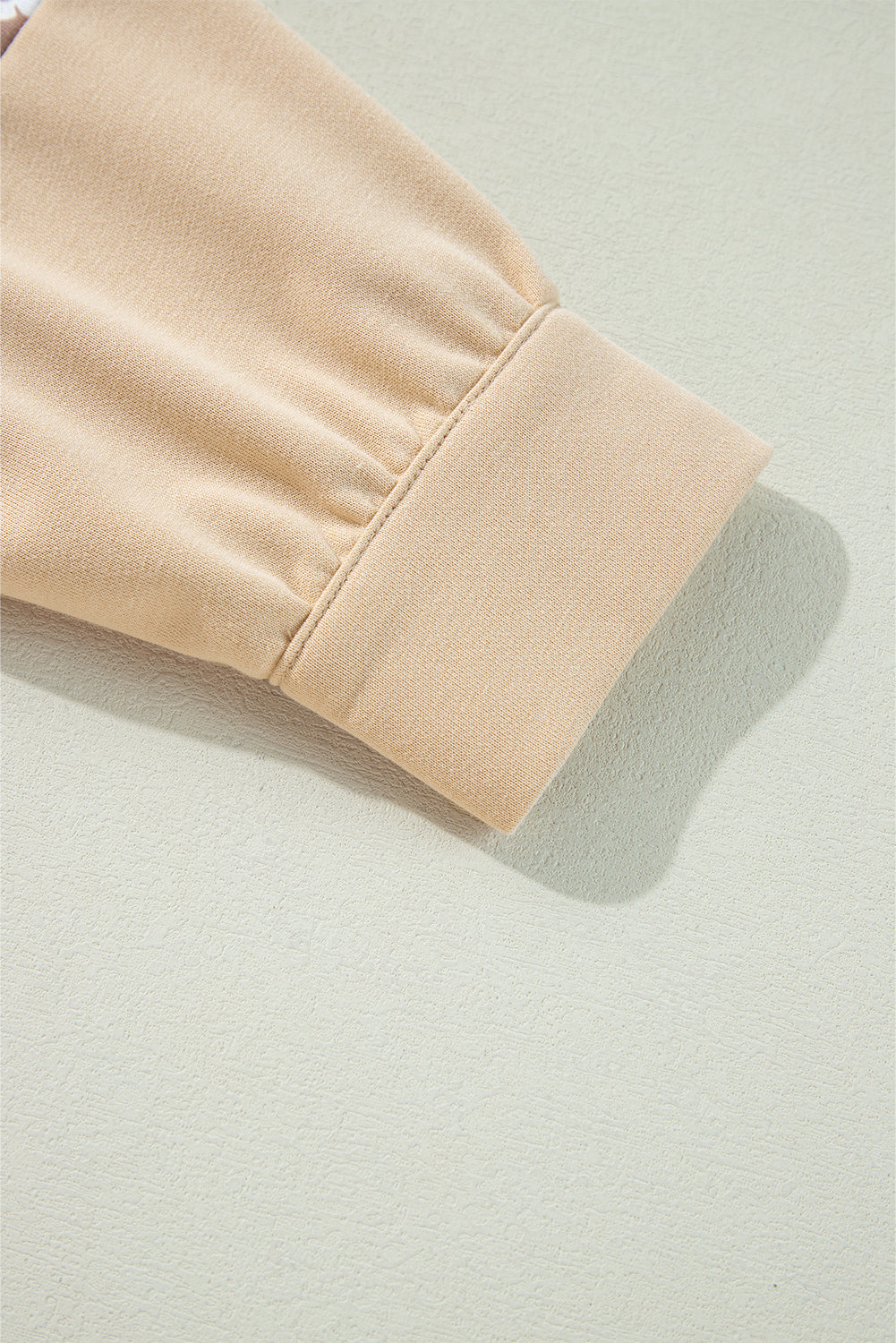 Apricot Floral Patchwork Star Pattern Drawstring Hoodie