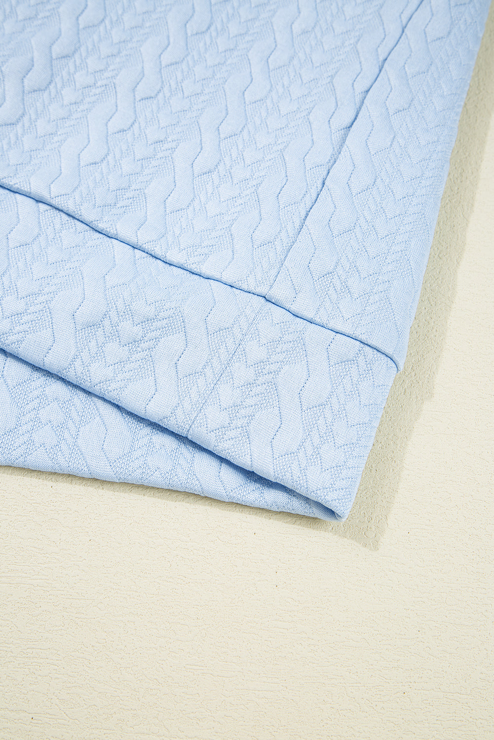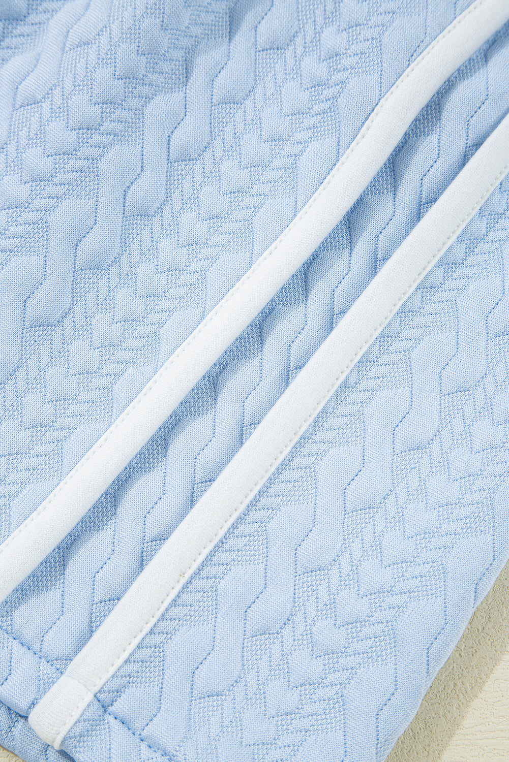 Beau Blue Contrast Trim Textured Crewneck Tee and Pocketed Skirt Set