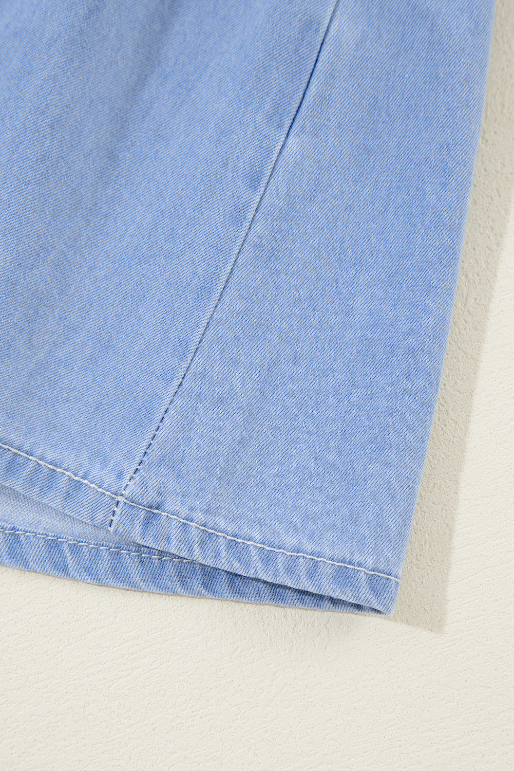 - This chambray dress features a loose fit tiered style with a v neck and puff sleeves.