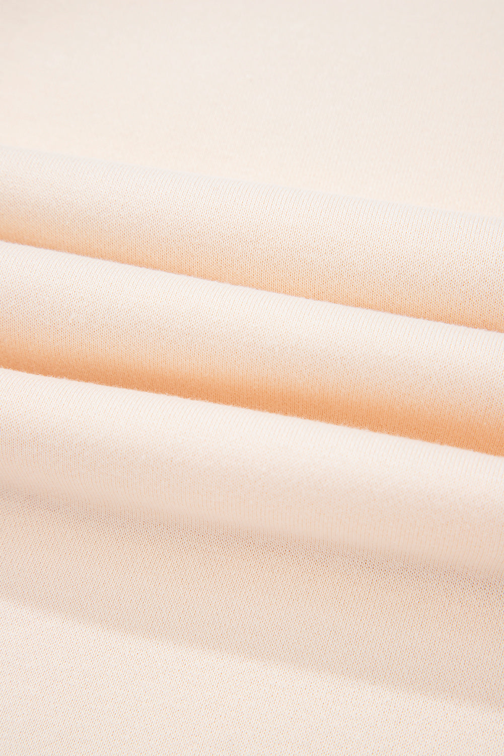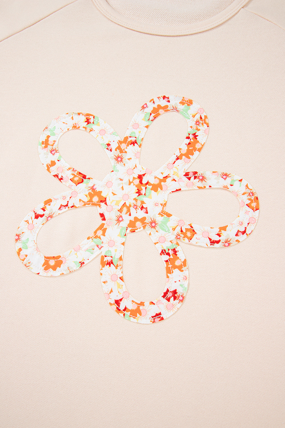 Beige Plus Size Flower Patched Side Slits Crewneck Top