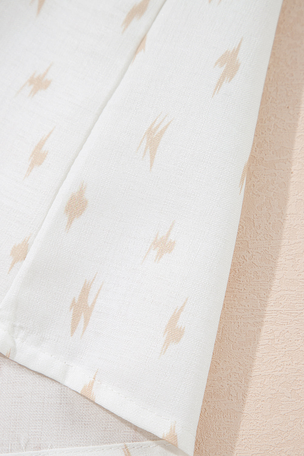 Beige Western Aztec Print Pleated Square Neck Loose Mini Dress