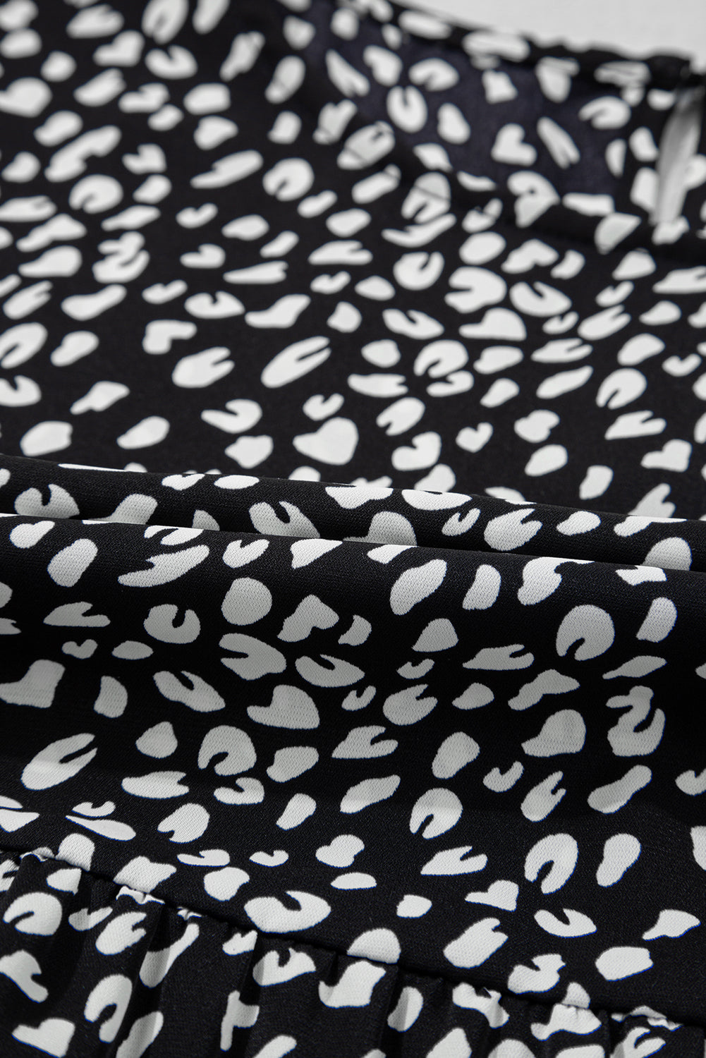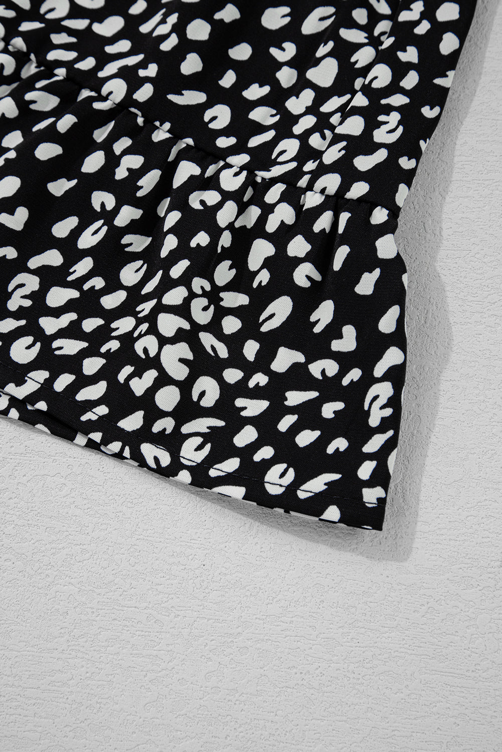 Black Leopard Print Ruffled Short Sleeve Keyhole Back Tiered Flowy Plus Size Blouse