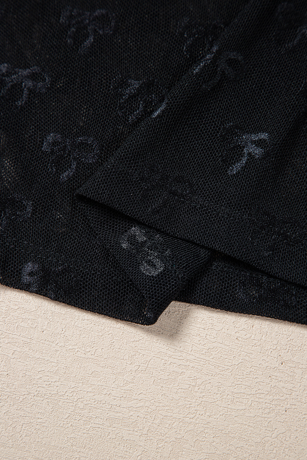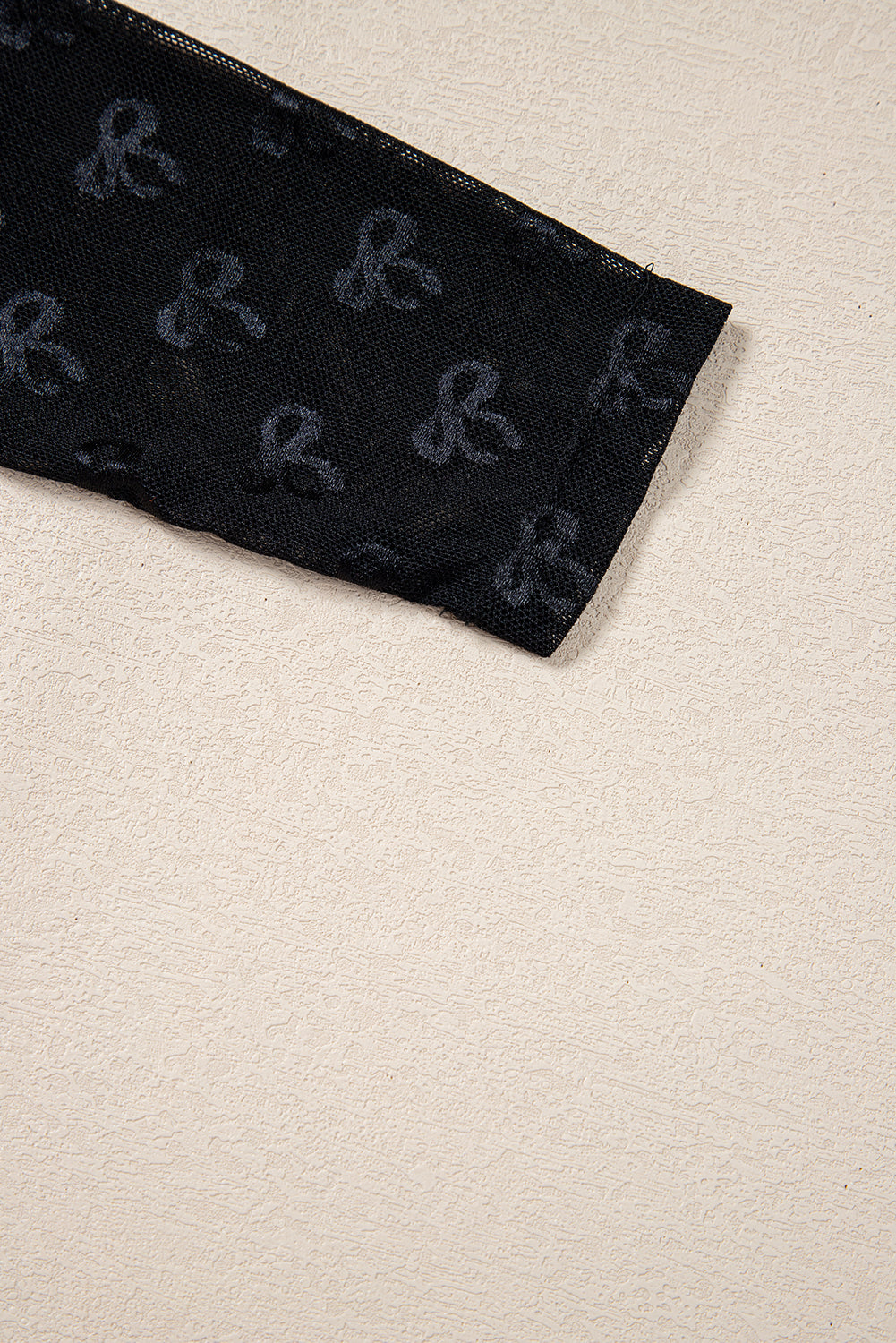 Black Mesh Bow Pattern Long Sleeve Top