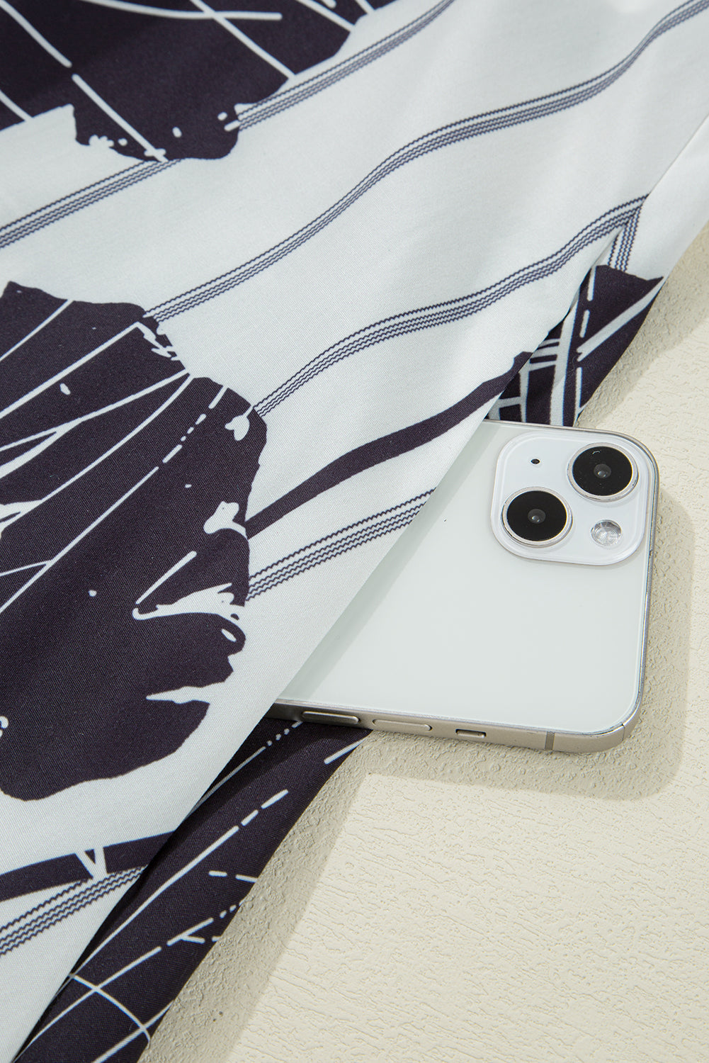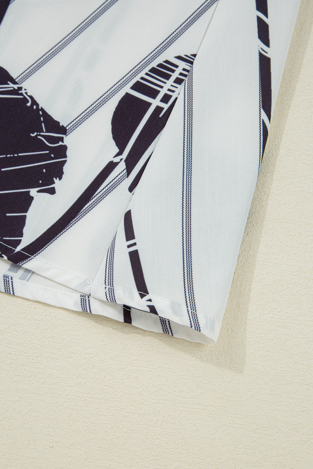 Black Plus Size Floral 3/4 Puff Sleeve Lace-up Neck Mini Dress