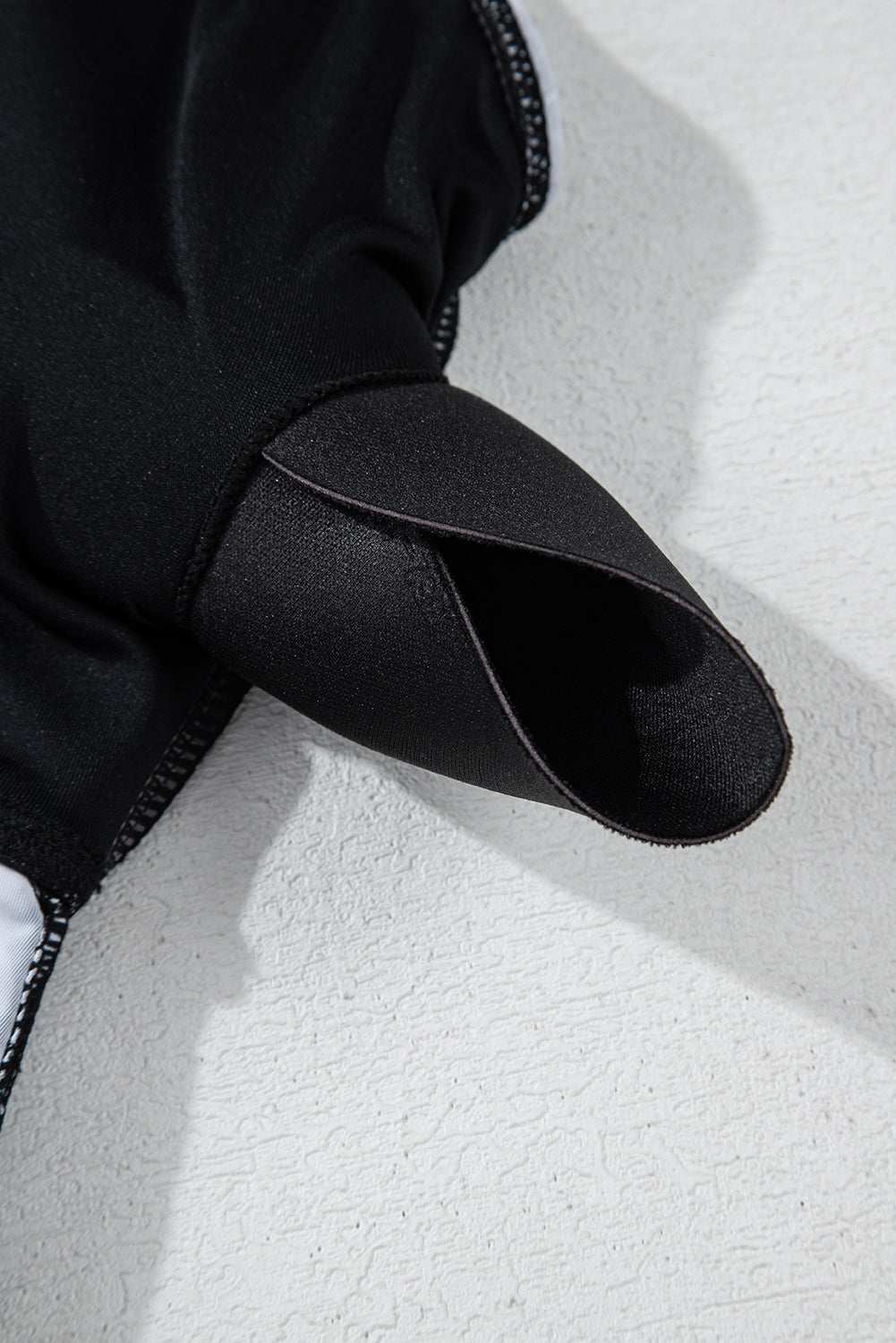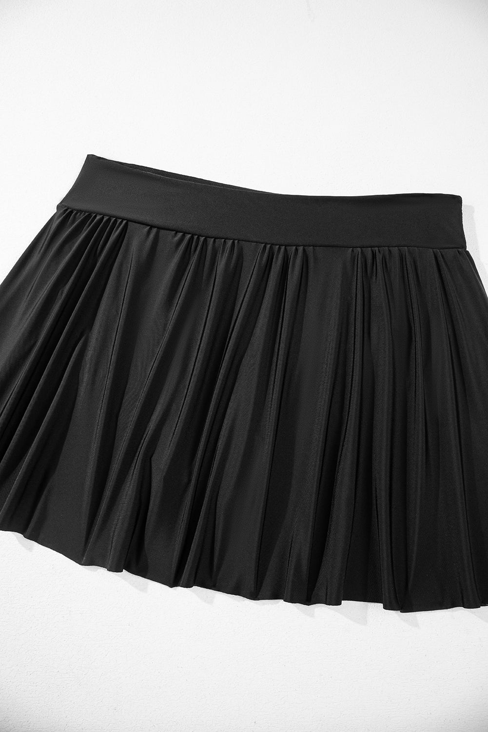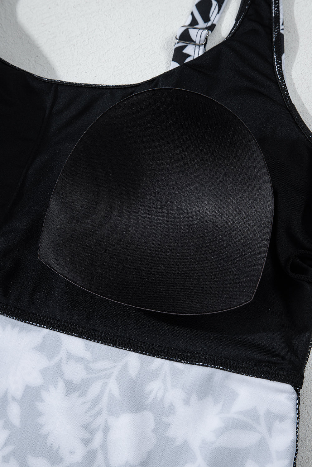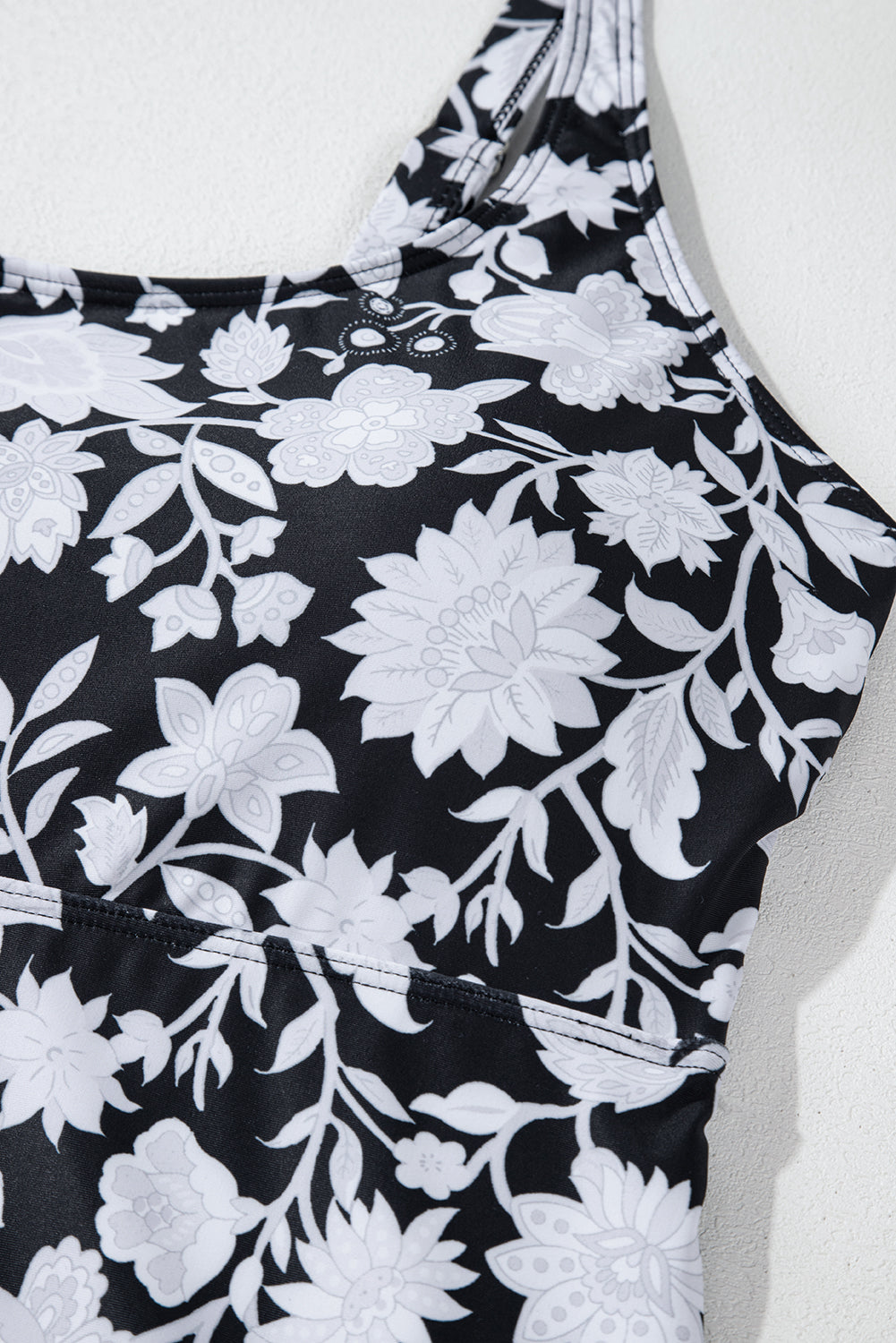 Black Plus Size Printed Square Neck Drawstring Ruffled Tankini Set