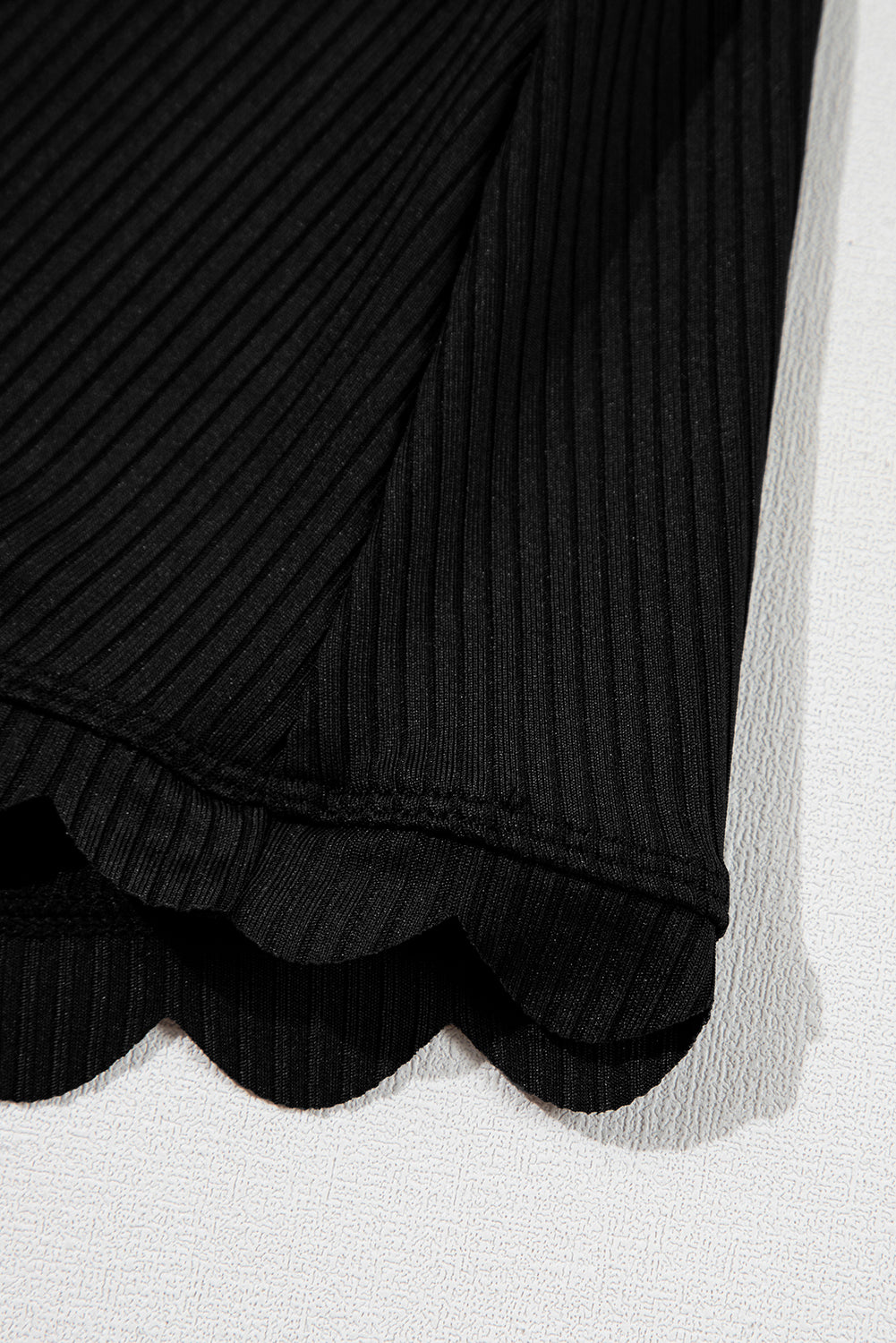 - The scalloped trim accentuates the hemline of the dress.