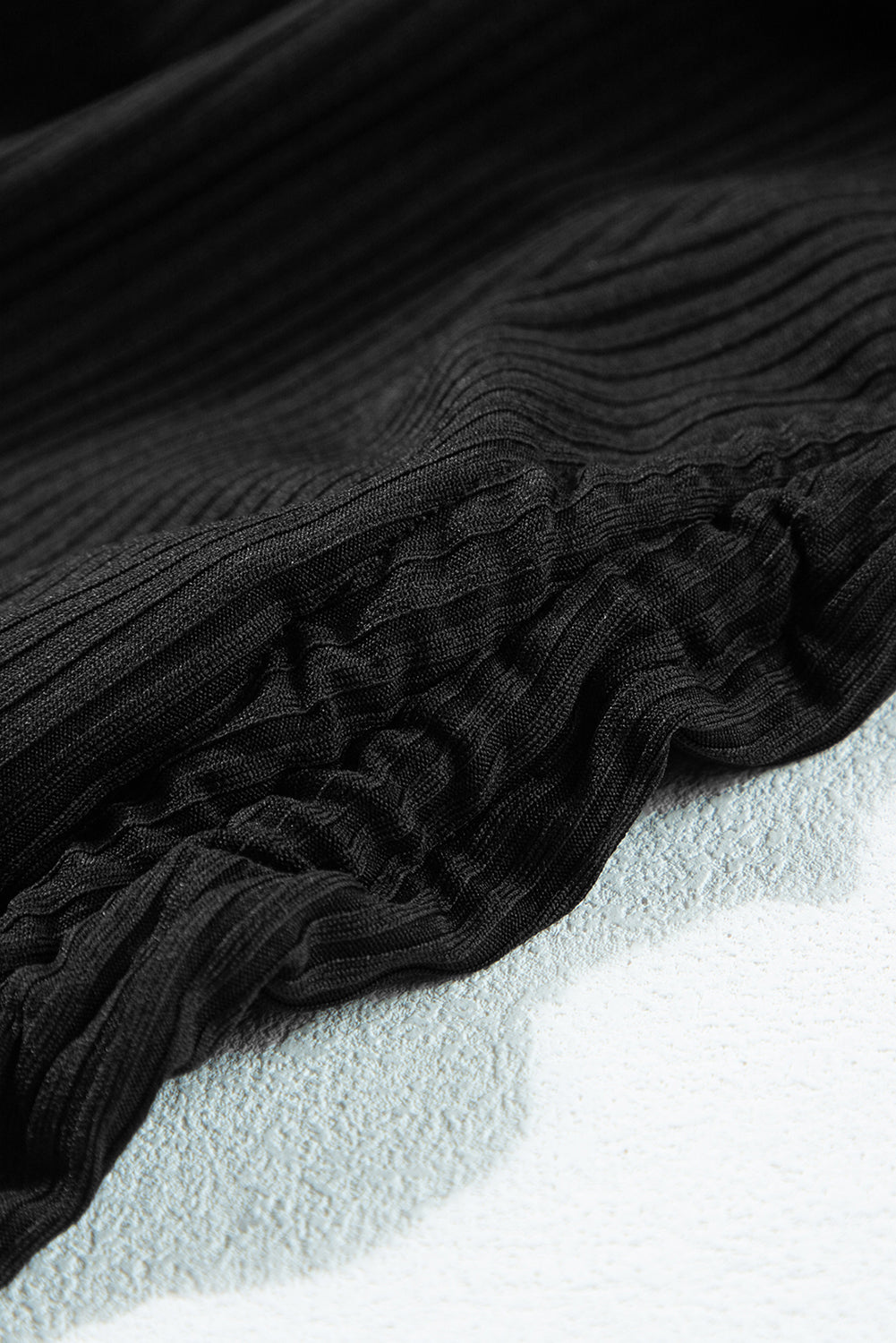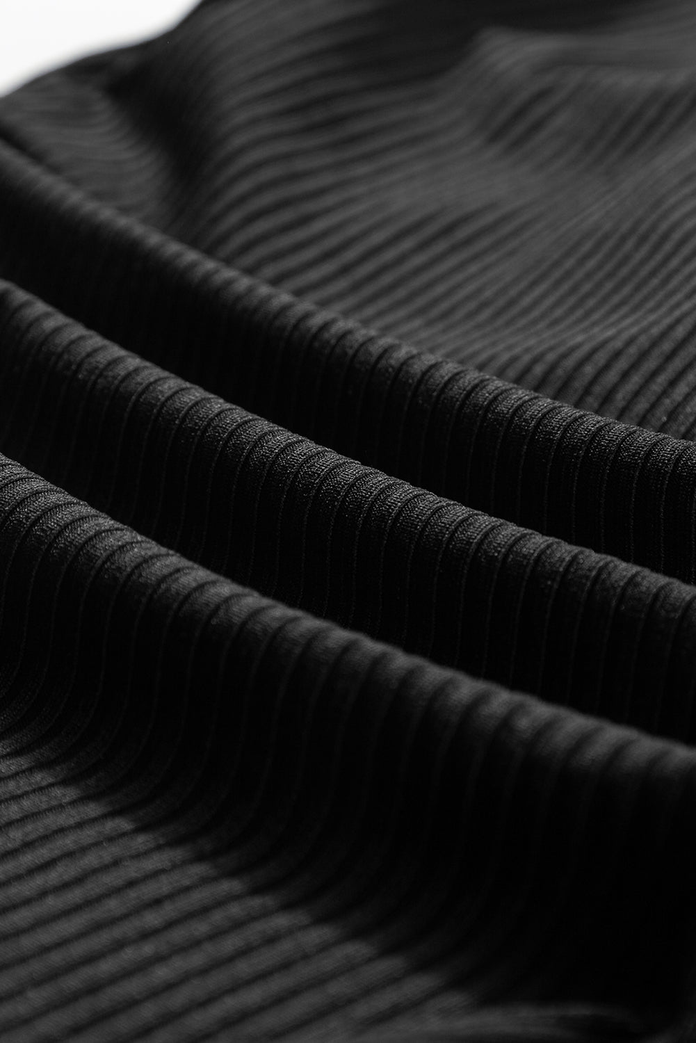 Black Ribbed Drawstring Sides Cutout One Piece Swimsuit