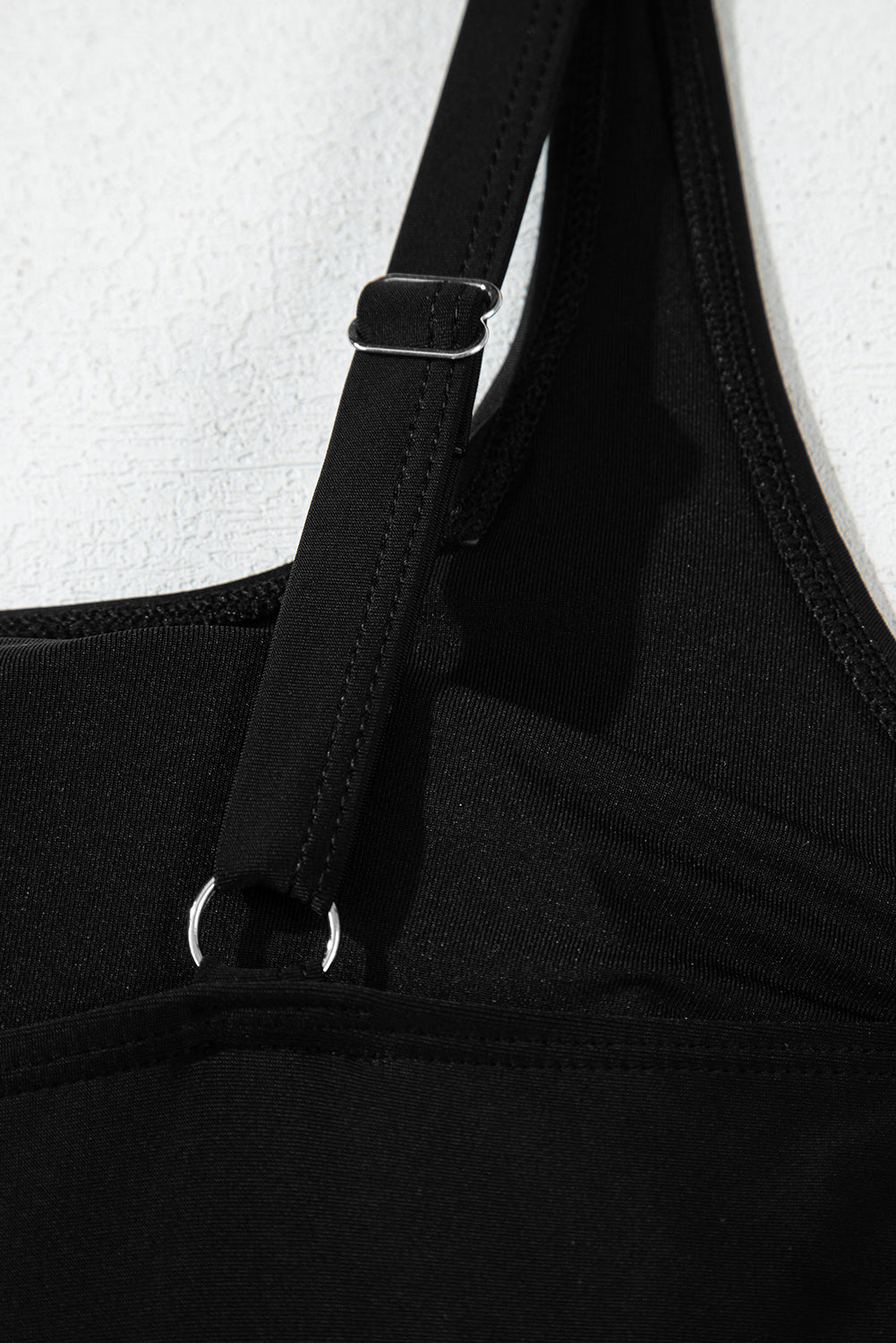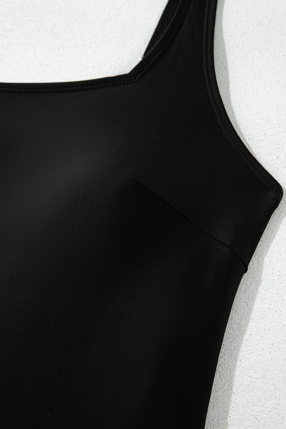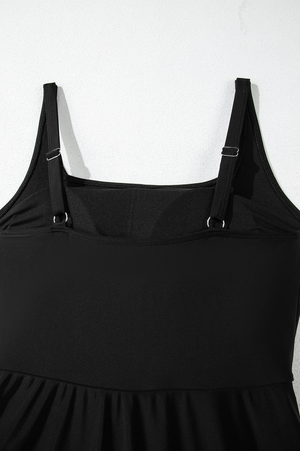 Black Side Tied Waist Square Neck Adjustable Straps A-line One Piece Swim Dress