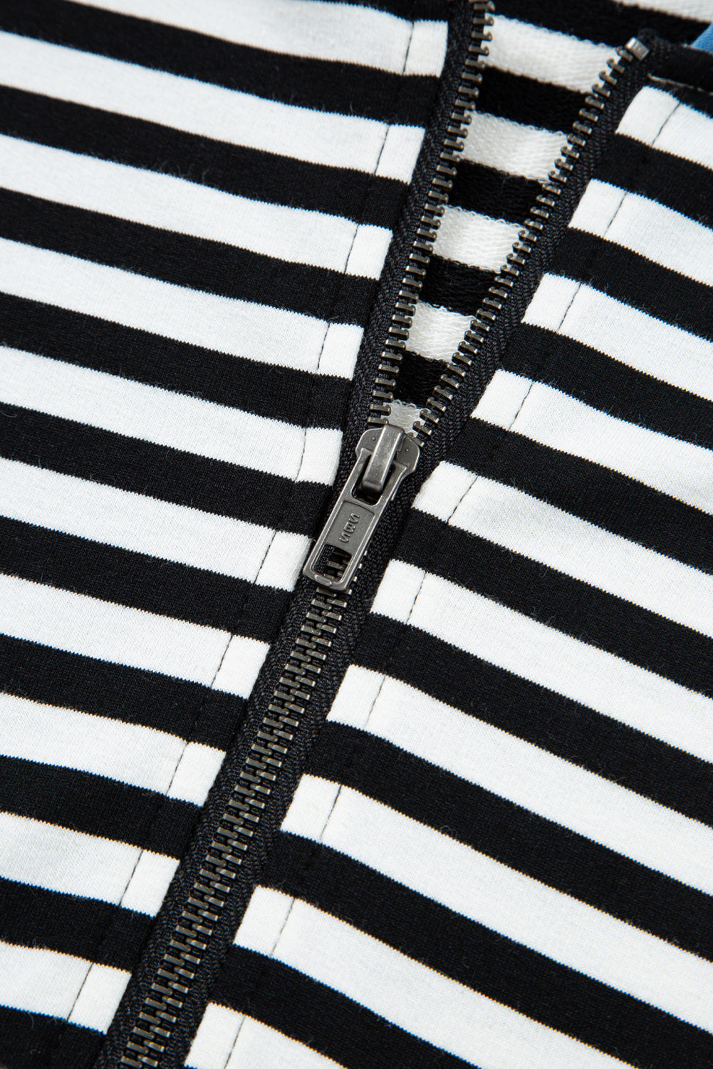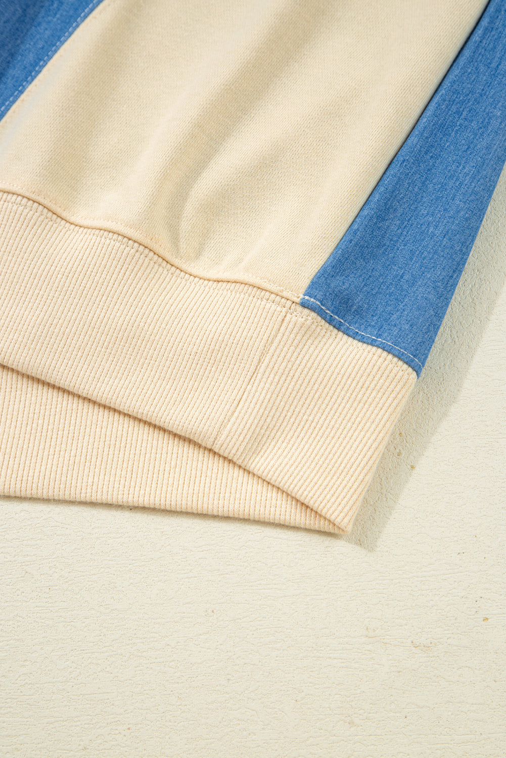 Black Stripe Denim Color Block Quarter Zip Baggy Drawstring Hoodie