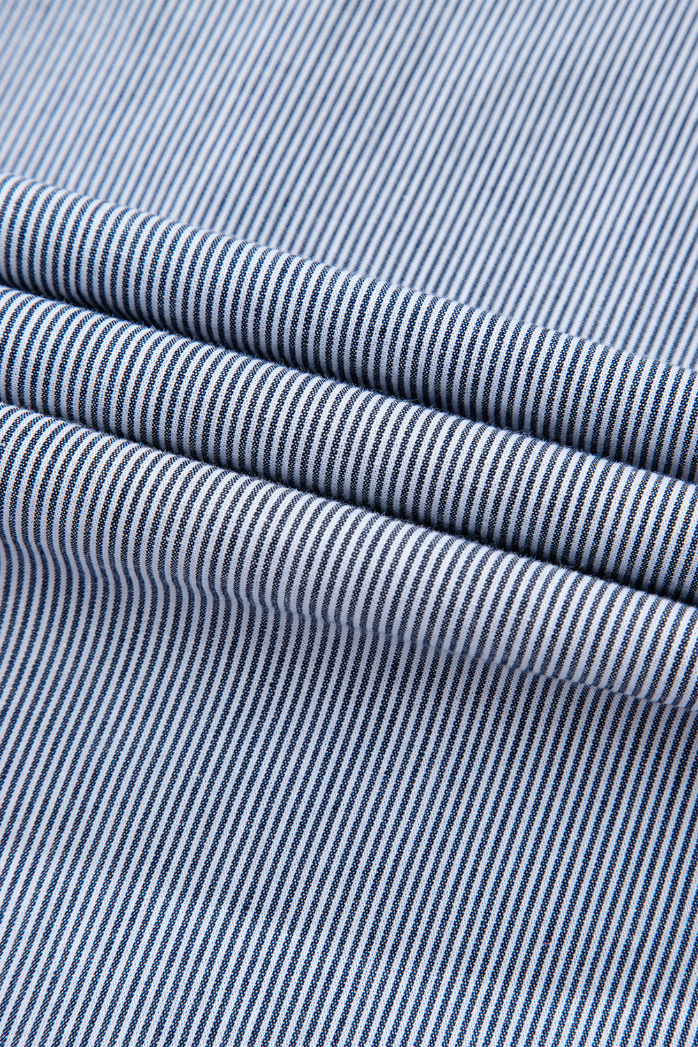 Blue Stripe Frilled Sleeveless Collar Front Pocket Button Up Mini Dress
