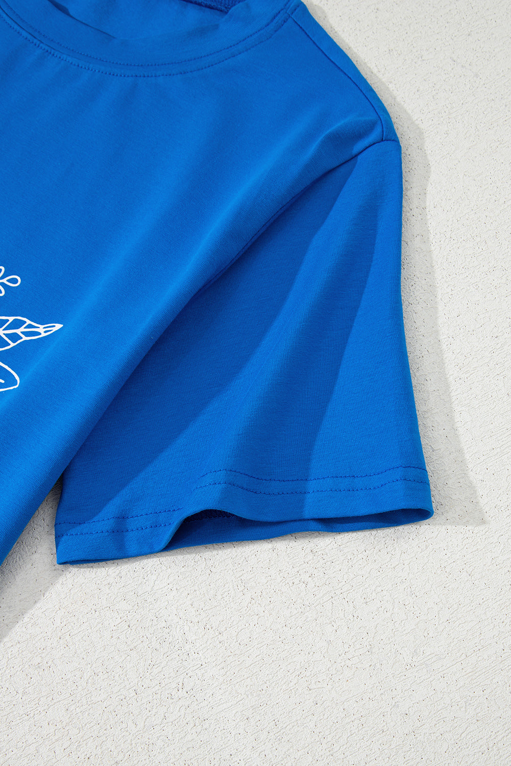 Blue Sunflower Boots Graphic Western Fashion T Shirt