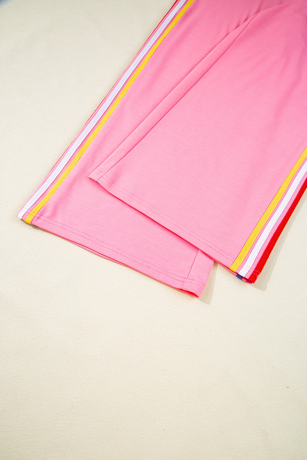 Bonbon Color Contrast Crewneck T Shirt and Wide Leg High Waist Pants Set