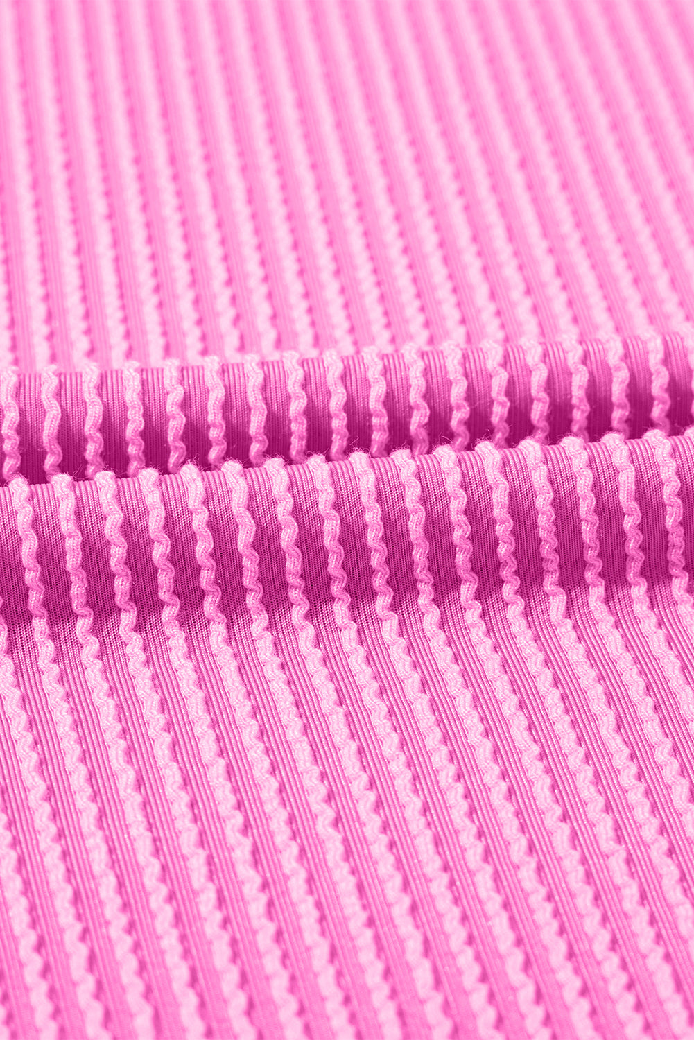 Bright Pink Corded Knit Crew Neck Puff Sleeve Shift Mini Dress