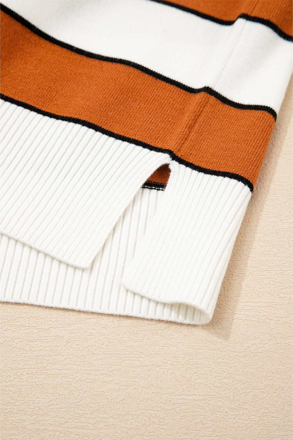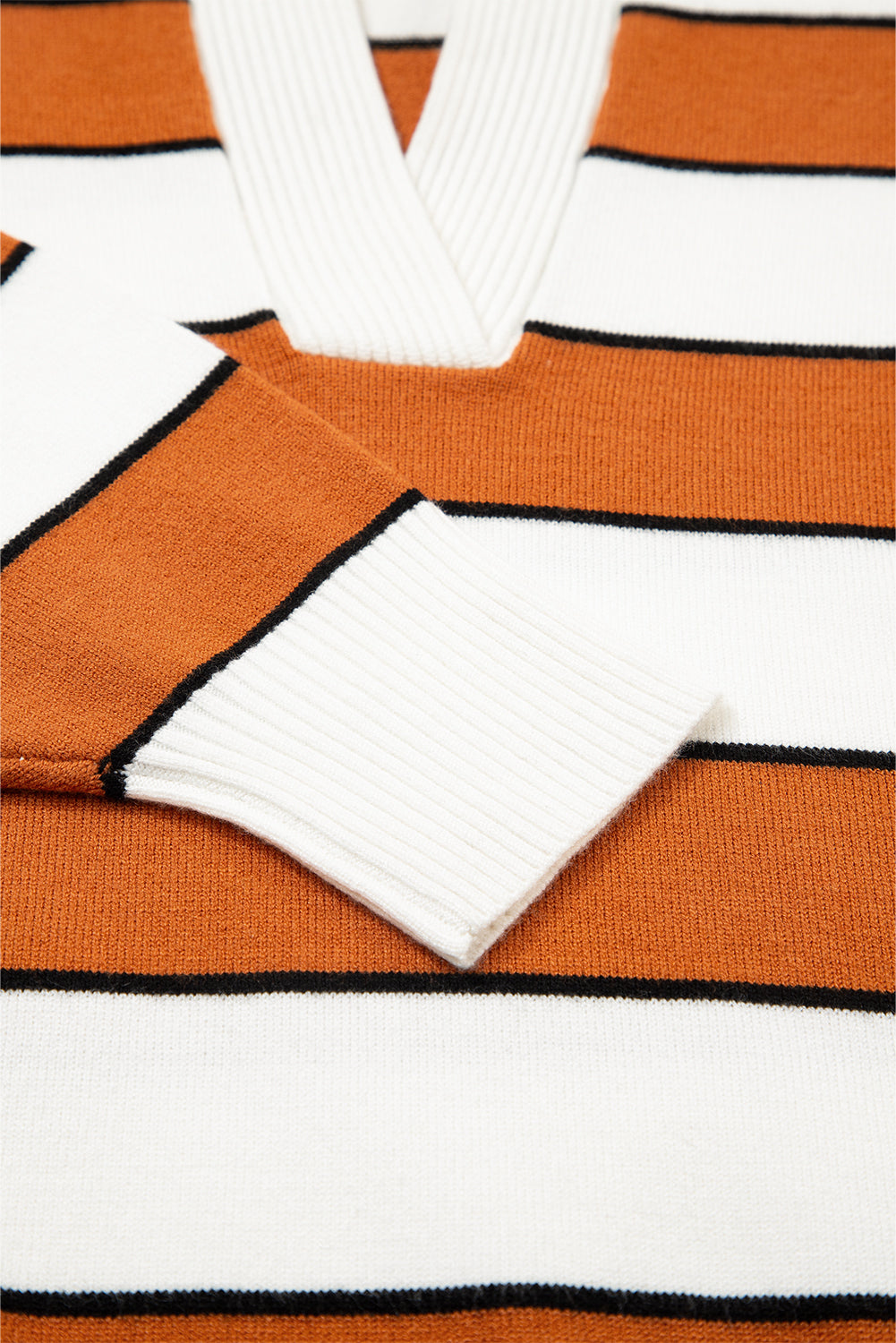 Brown Stripe Ribbed Polo Collar Drop Shoulder Sweater