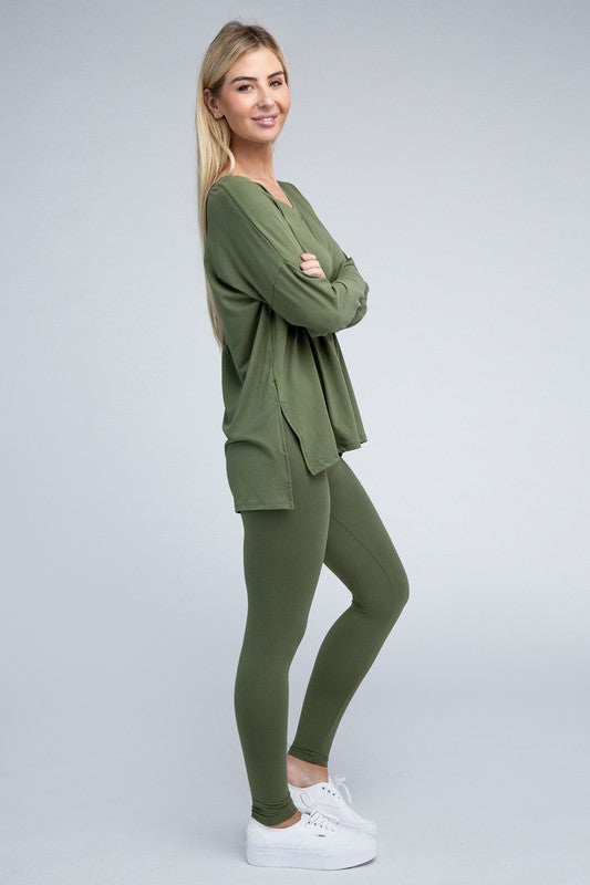 Indulge in ultimate comfort and style with the Brushed DTY Microfiber Loungewear Set. Crafted from buttery-soft DTY microfiber fabric, this set offers a luxurious feel against your skin. Its perfect stretch and recovery ensure that it maintains its shape and fit wear after wear.