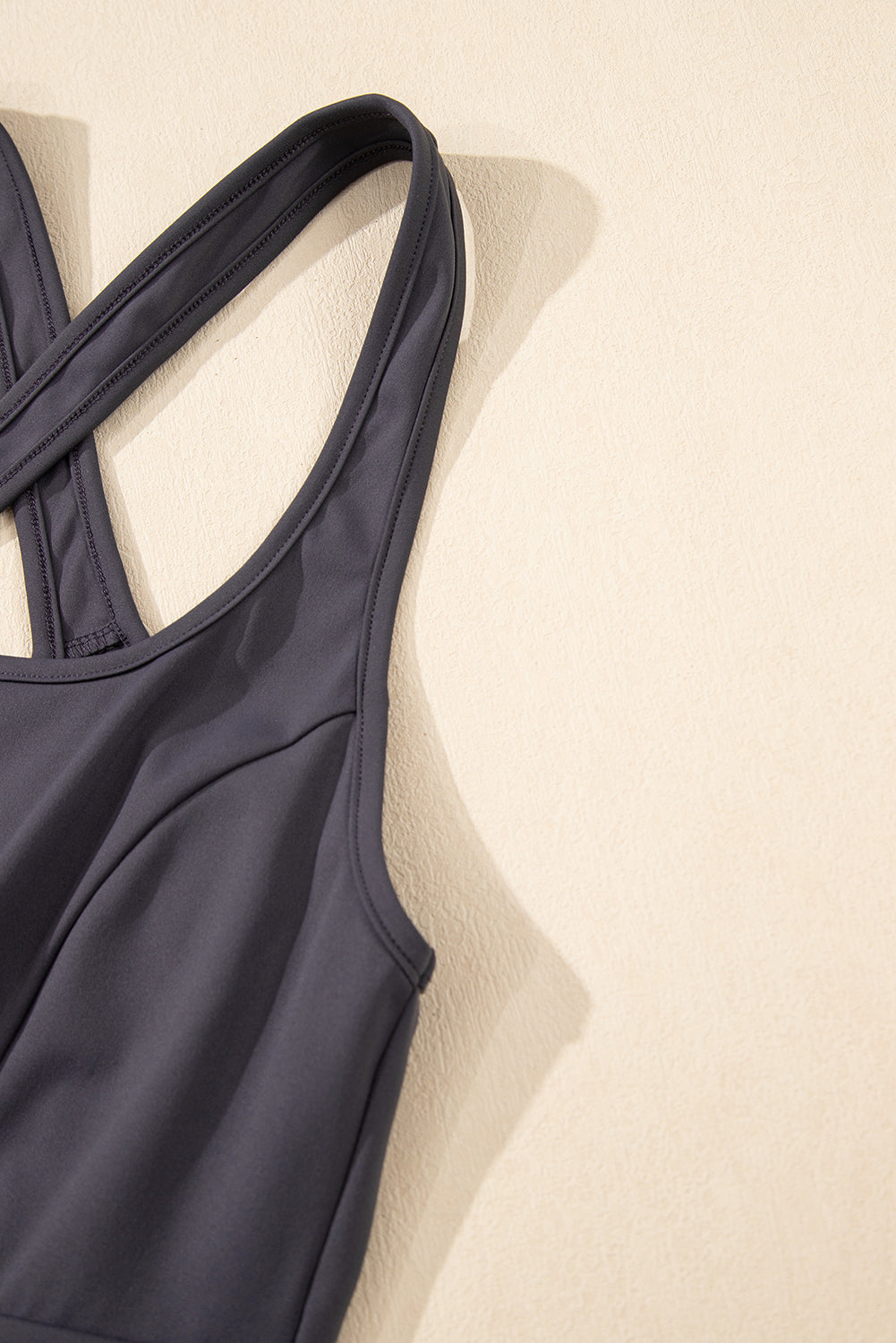 Carbon Grey Back Crossed Straps Hollow Out Jogger Jumpsuit