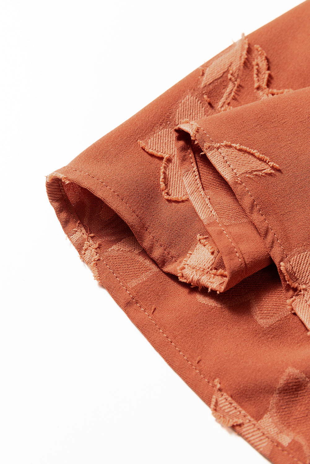 Cinnamon Plus Size Textured 3D Flower Pattern Ruffle Hem 3/4 Sleeve Long Dress