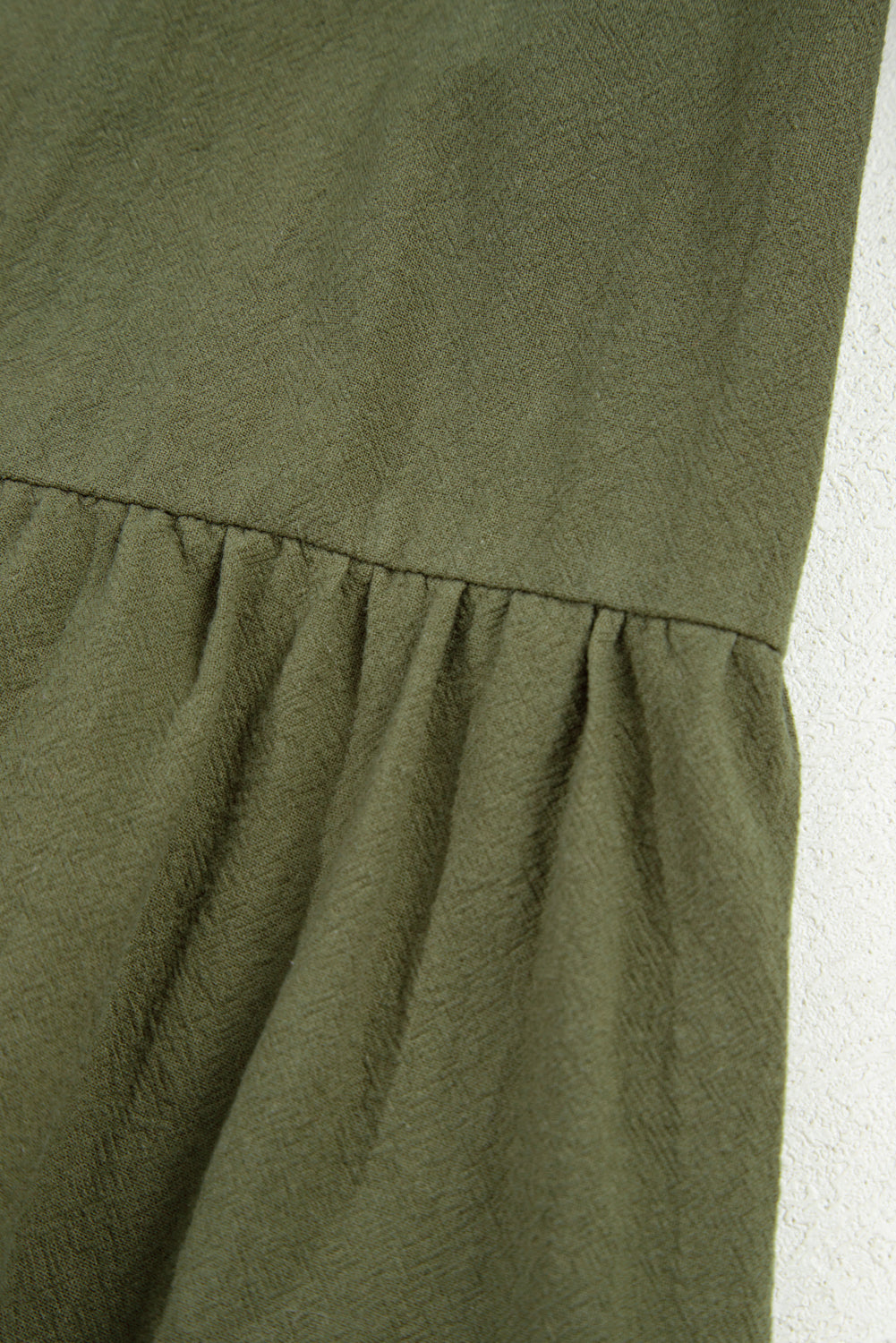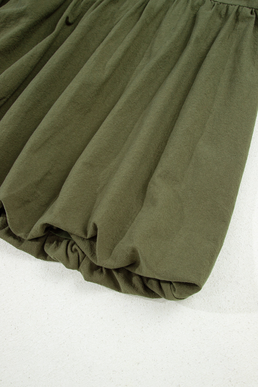 Four Leaf Clover Plus Size Collar Half Button Long Sleeve Ruffle Hem Mini Dress