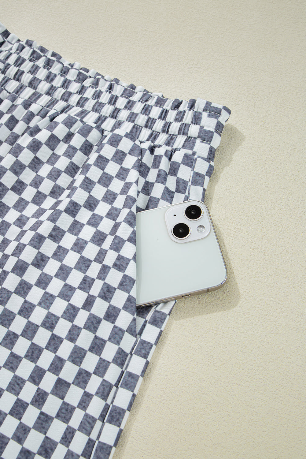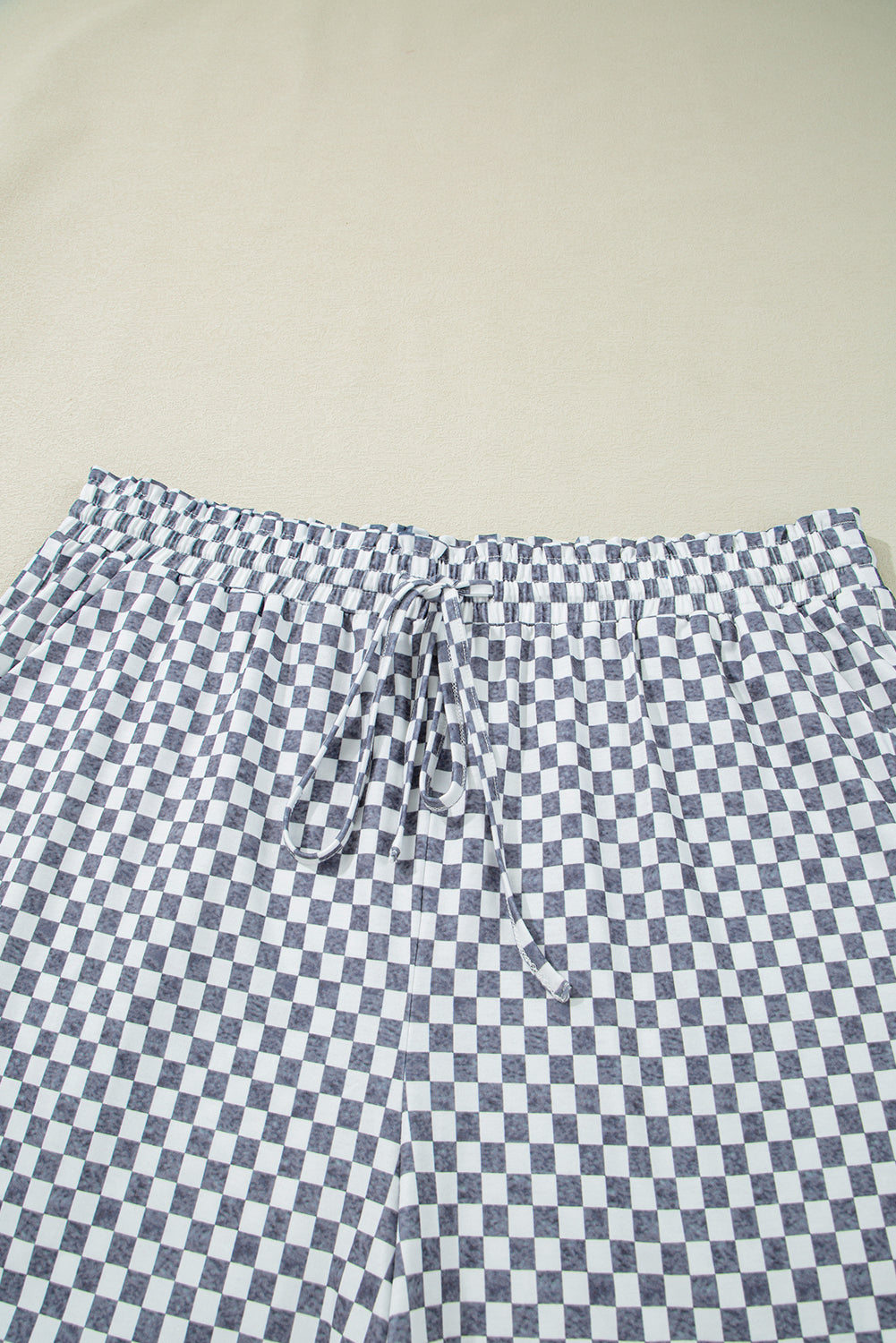 Gray Checkerboard Lace-Up High Waist Plus Size Casual Shorts