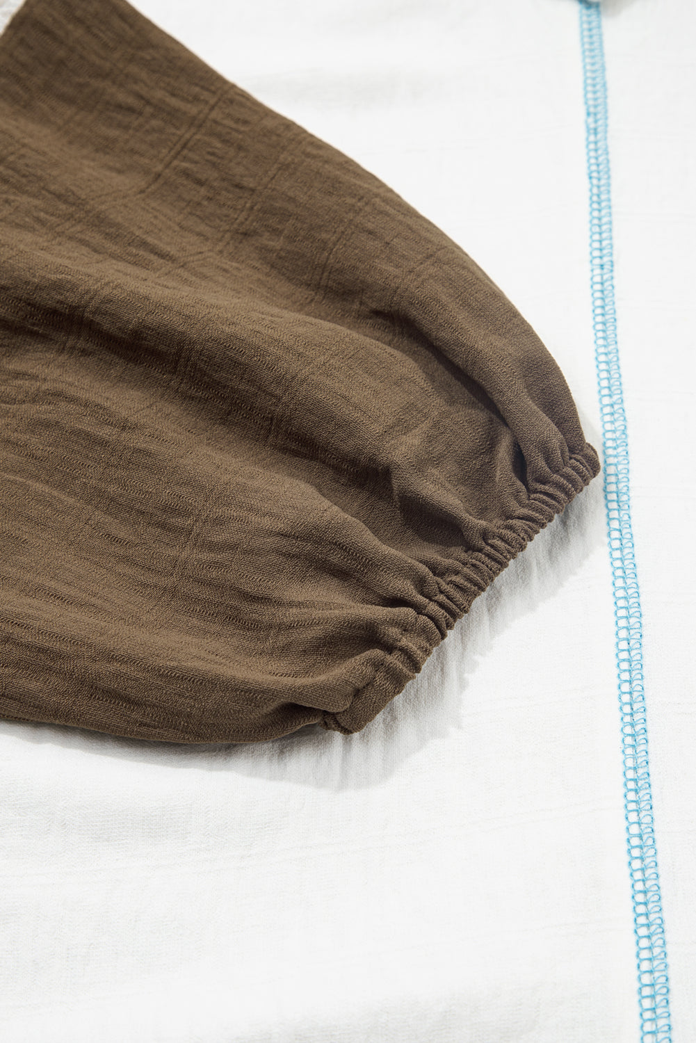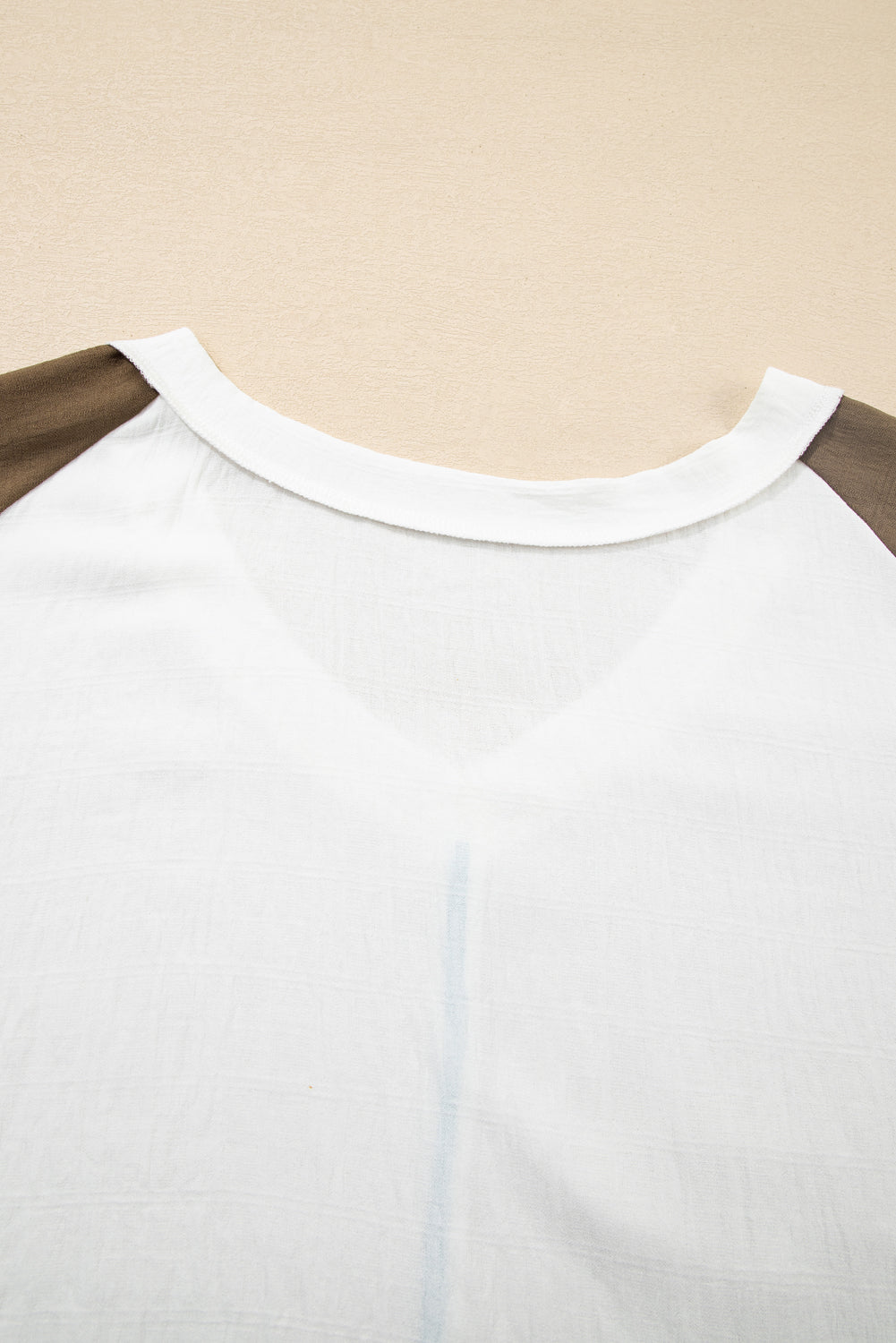 Green Colorblock Lace Patchwork Balloon Sleeve V Neck Plus Size Blouse