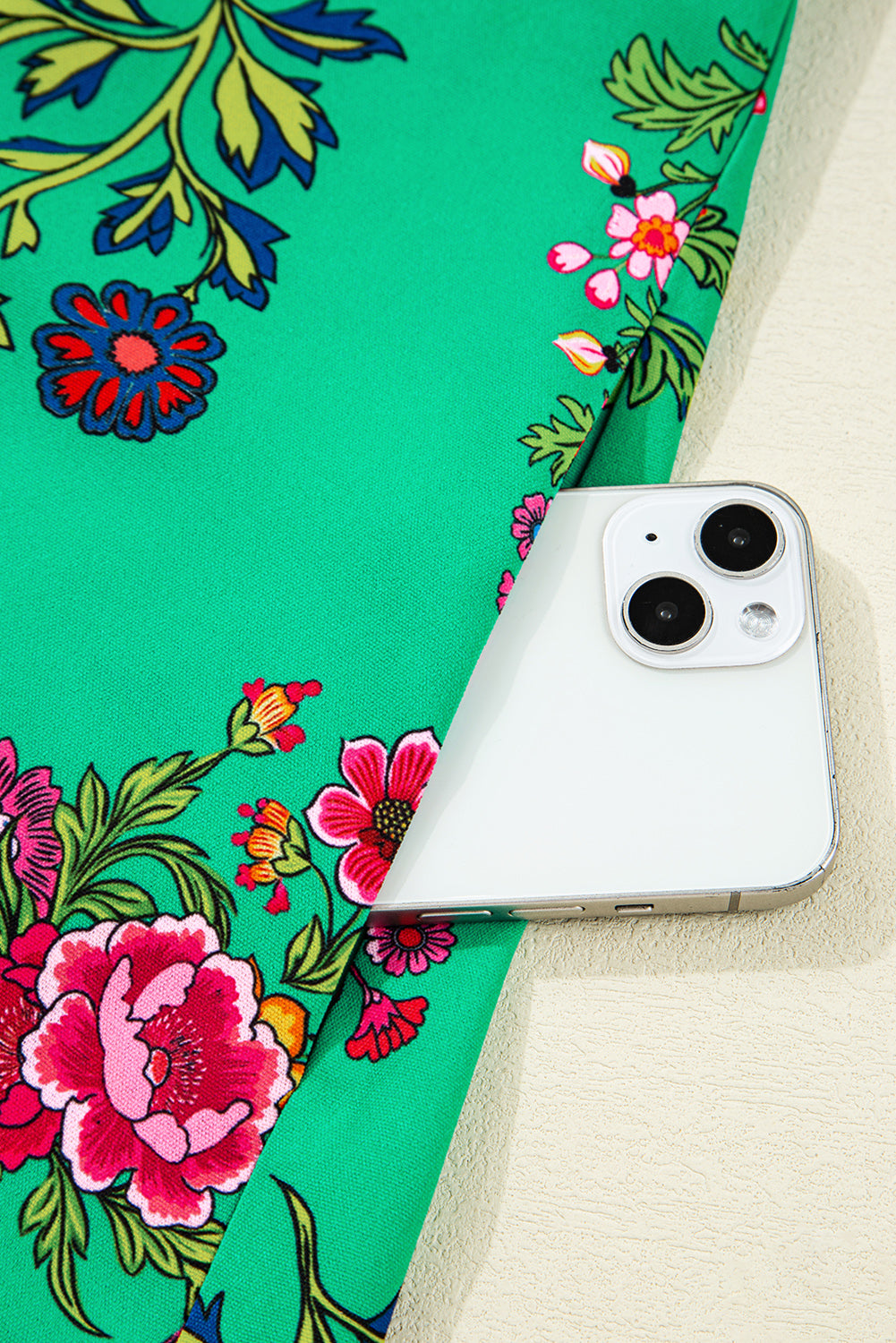 Green Floral Ruffled Three Quarter Sleeve Buttoned Mini Dress