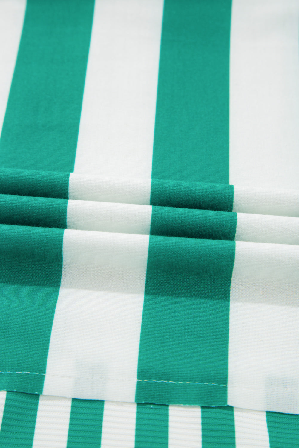 Green Stripe Colorblock Collar Half Buttons T Shirt