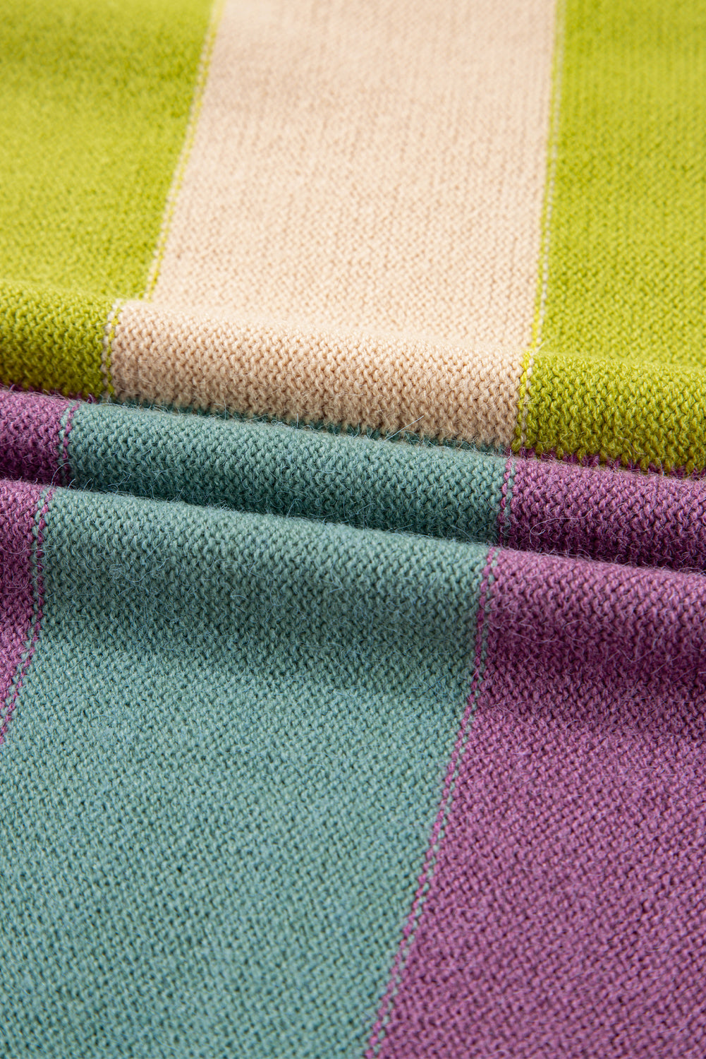 Green Stripe Drop Shoulder Ribbed Edge Casual Sweater