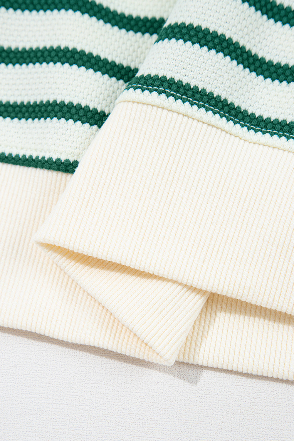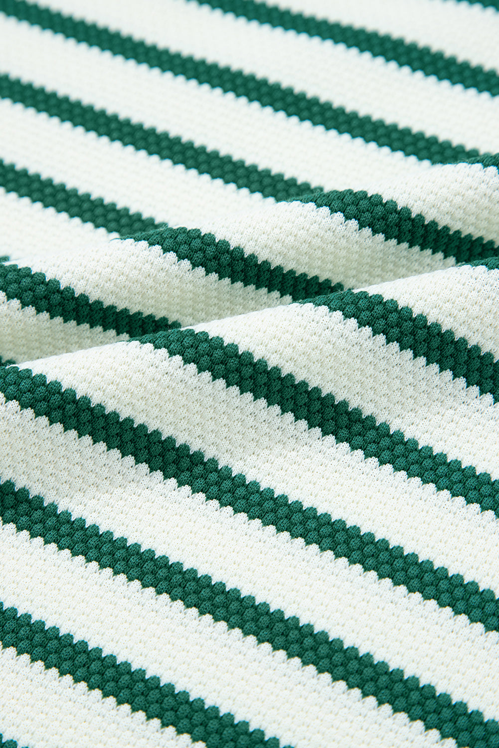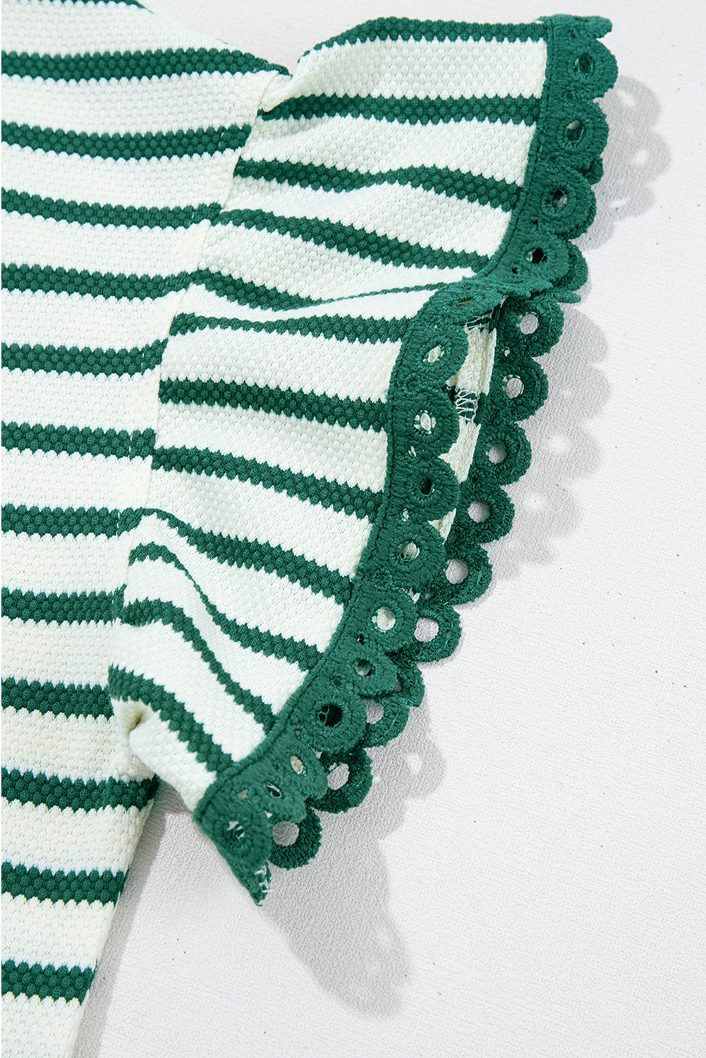 Green Stripe Scallop Lace Trim Ruffle Short Sleeves Crewneck Top