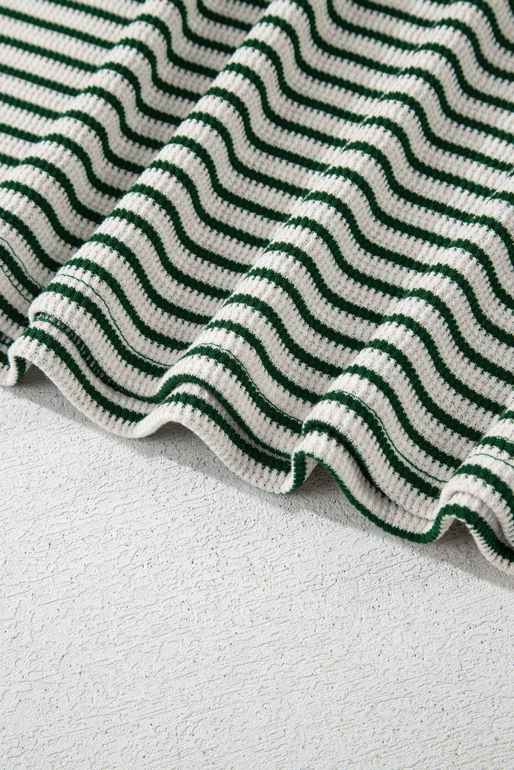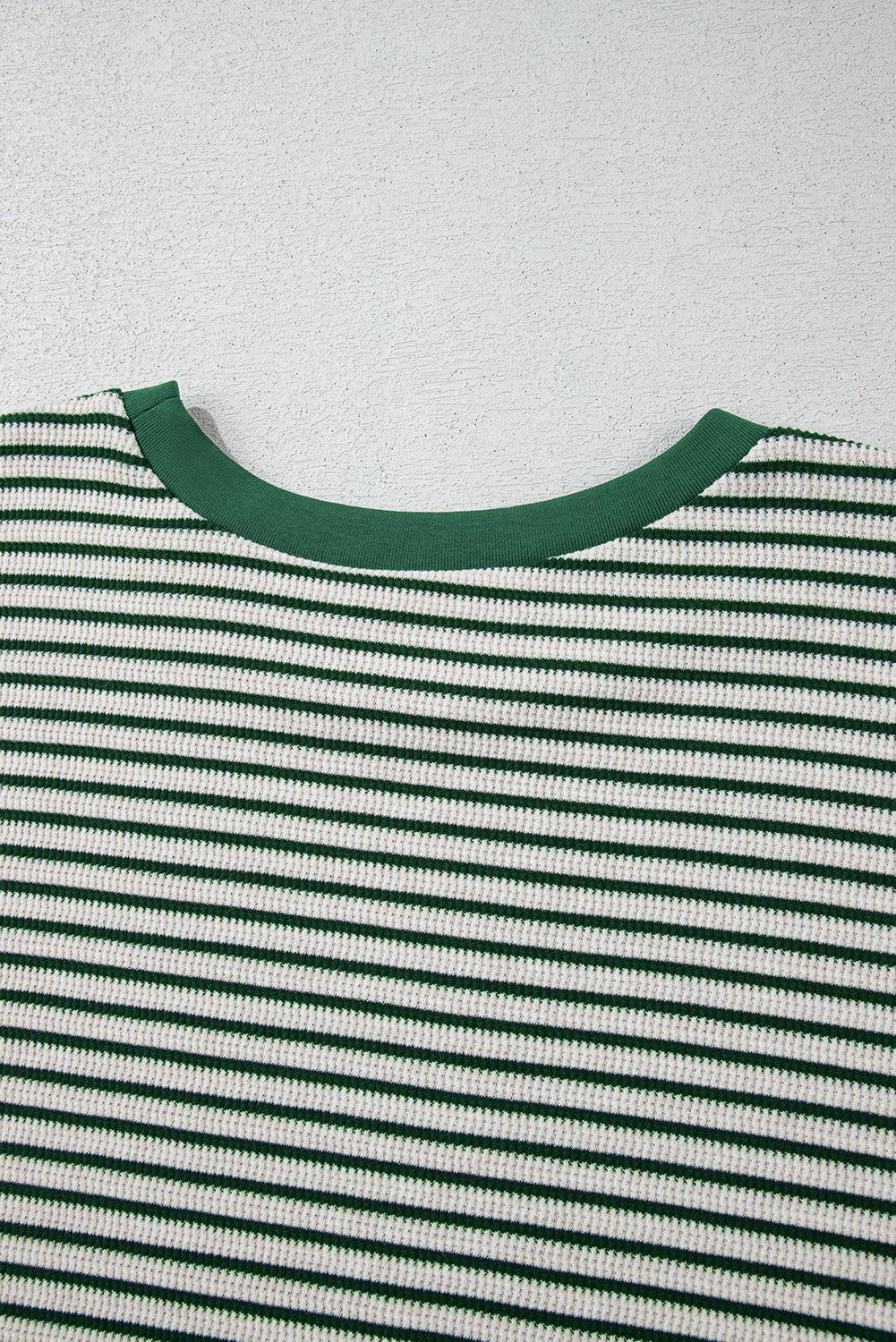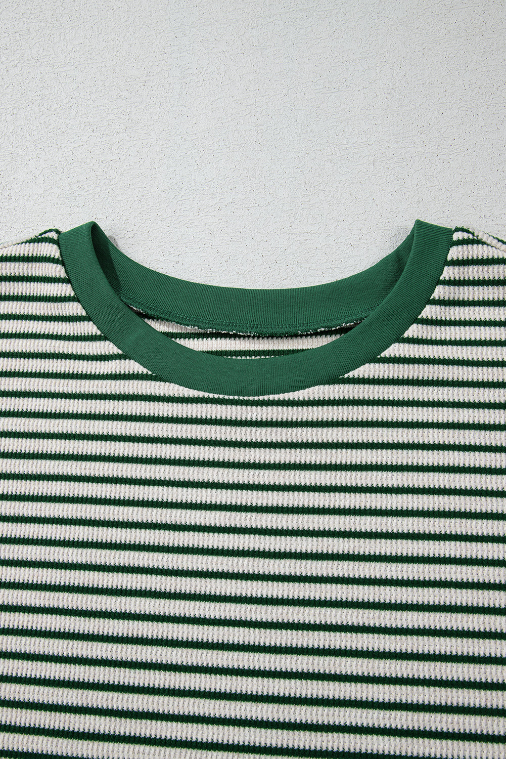 Green Stripe Trimmed Round Neck Plus Size Boxy Fit T-shirt