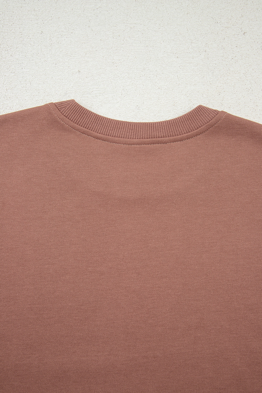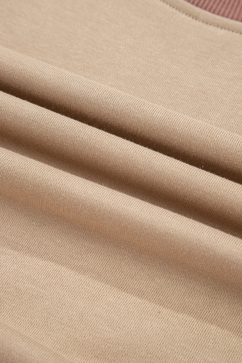 Khaki Color Block Long Sleeve Crop Top Drawstring Pant Set
