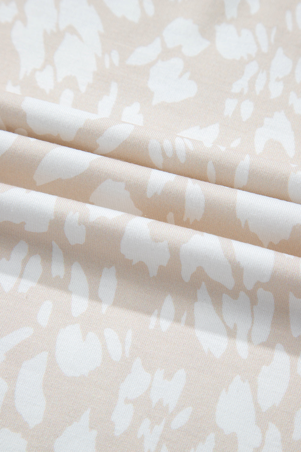 Khaki Leopard Print V Neck Side Slit Loose Fit T Shirt