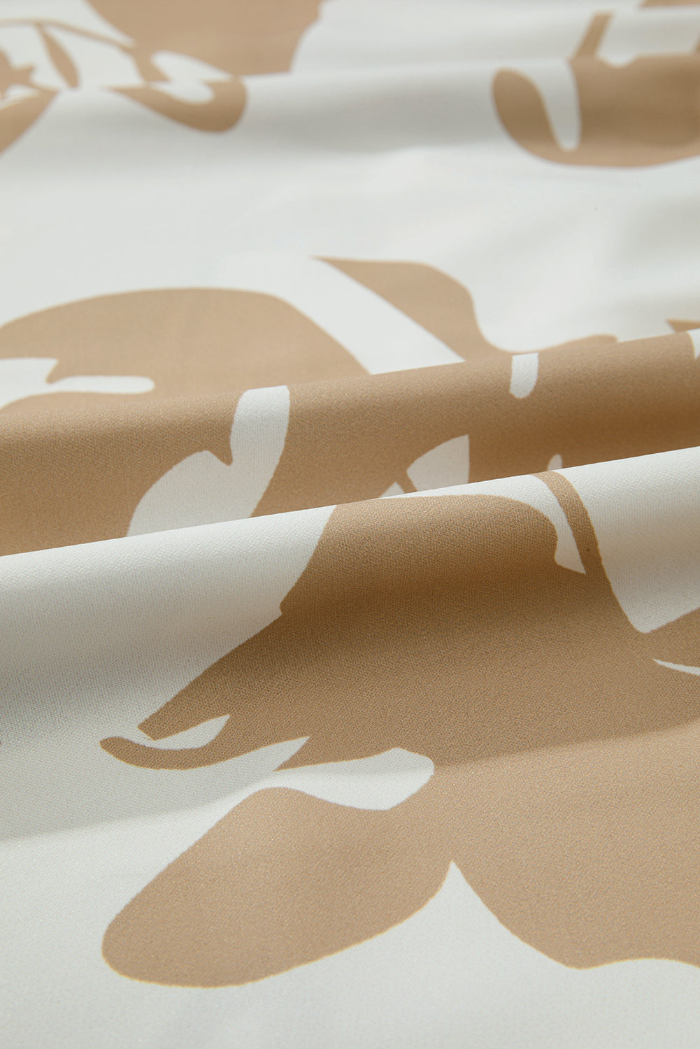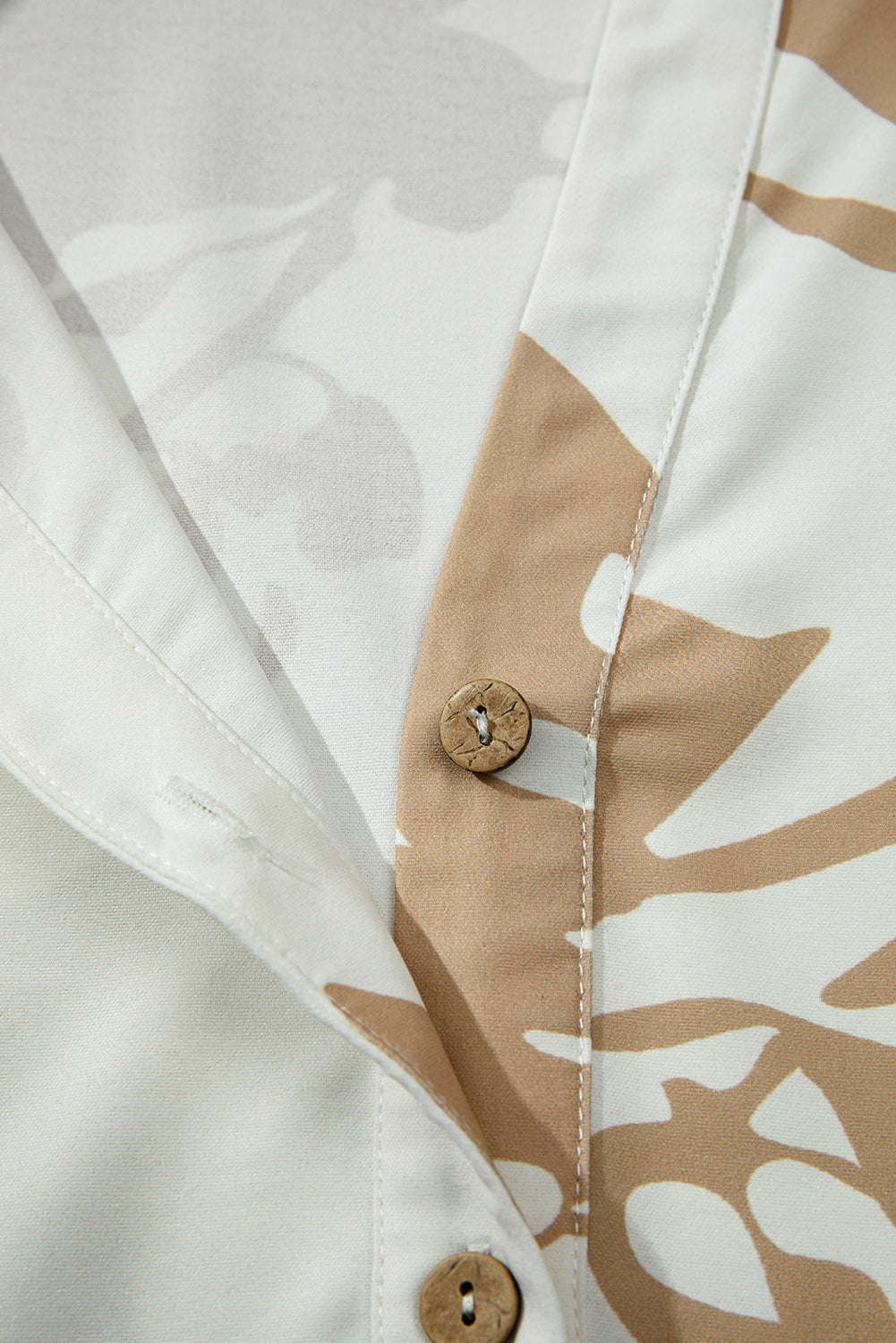 Khaki Patterned Ruffled Sleeve Half Placket Tiered A-line Plus Size Long Dress