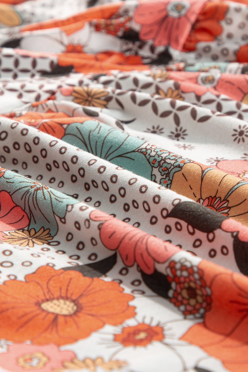 - This floral blouse adds a fresh and feminine touch.
