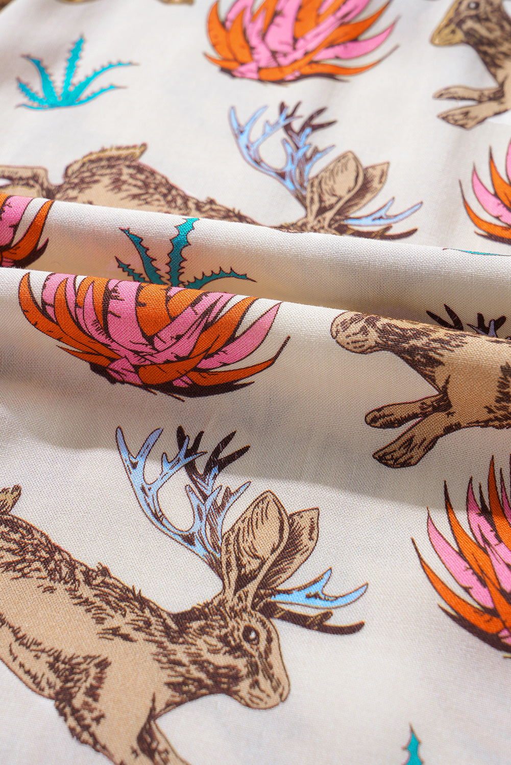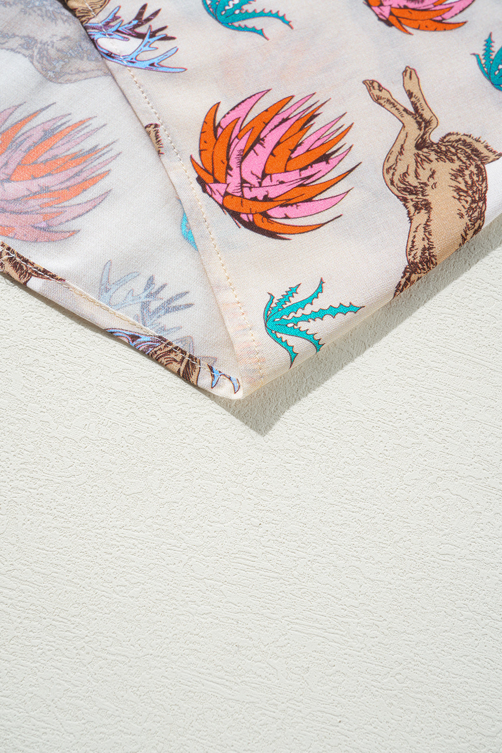 Khaki Plus Size Western Pattern Print Buttoned Short Sleeve Shirt