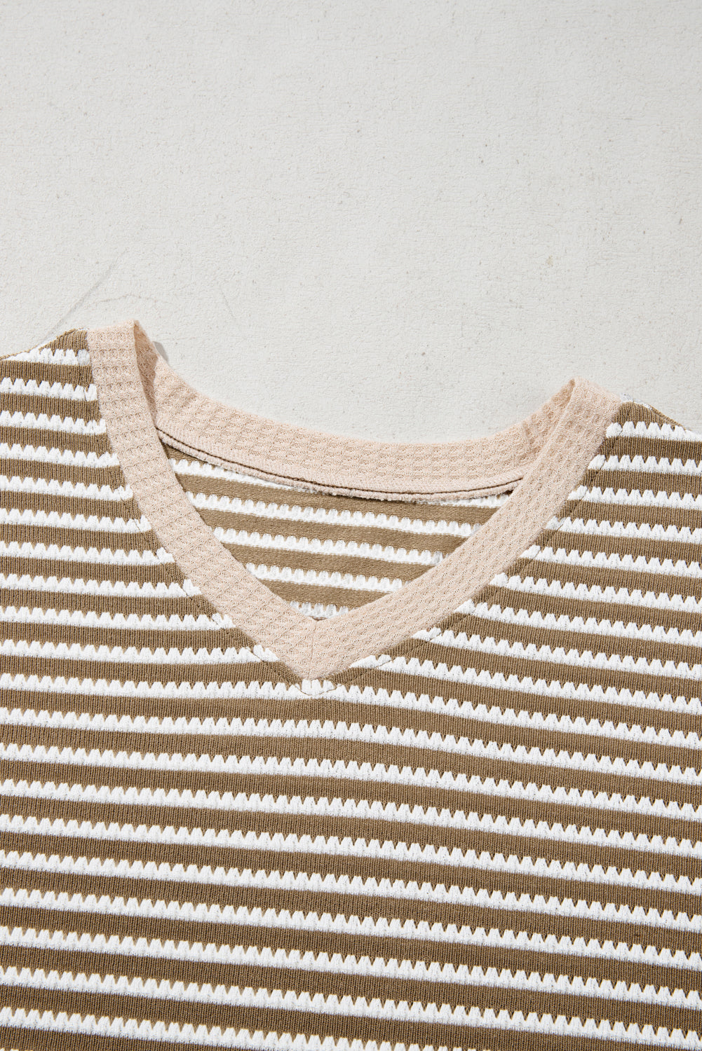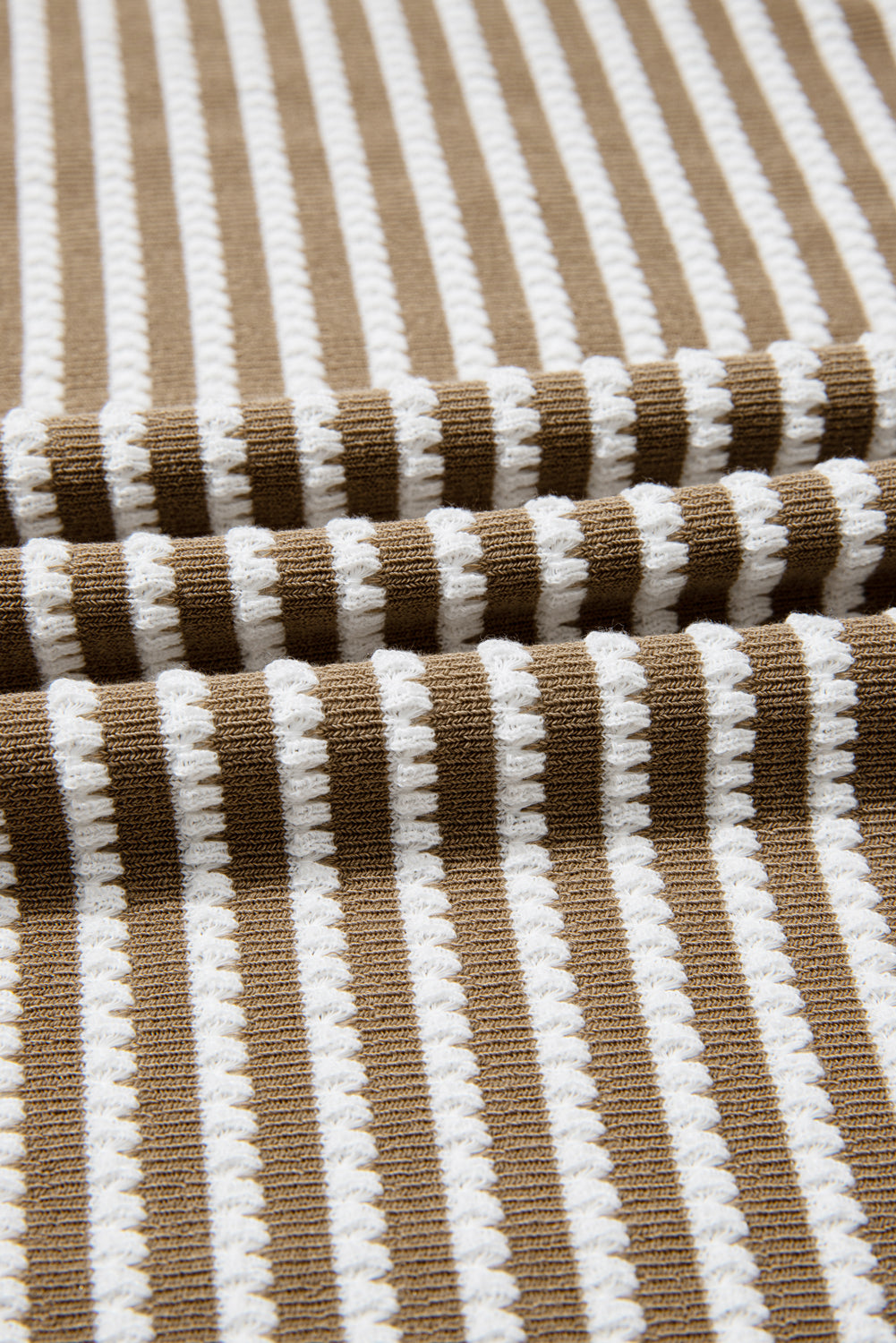 Khaki Stripe Textured Dolman Sleeve High Low Plus Size Top
