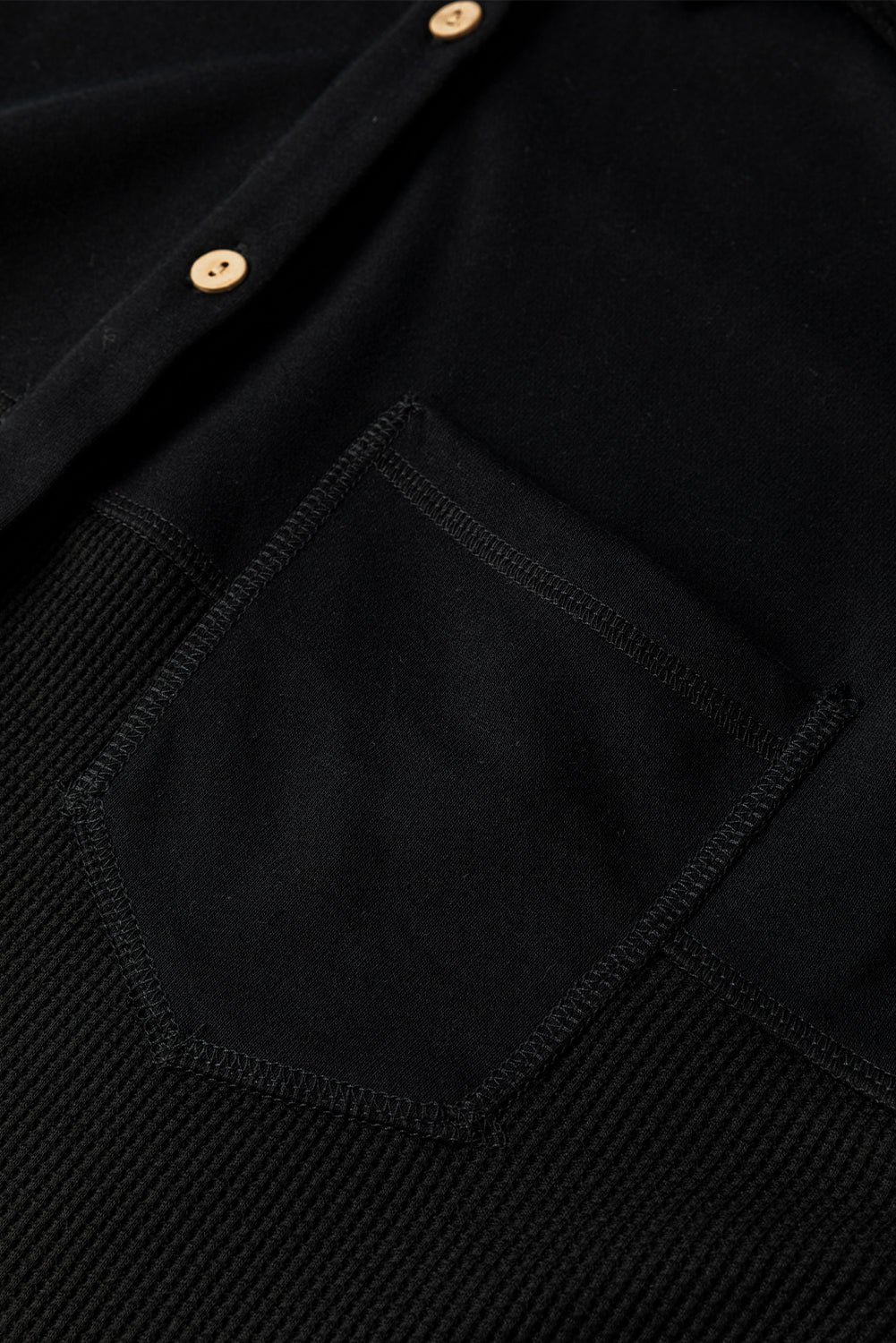 Medium Grey Waffle Knit Patchwork Exposed Seam Loose Shacket
