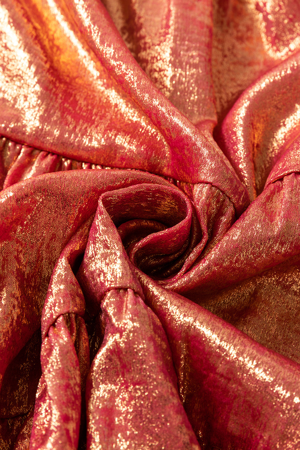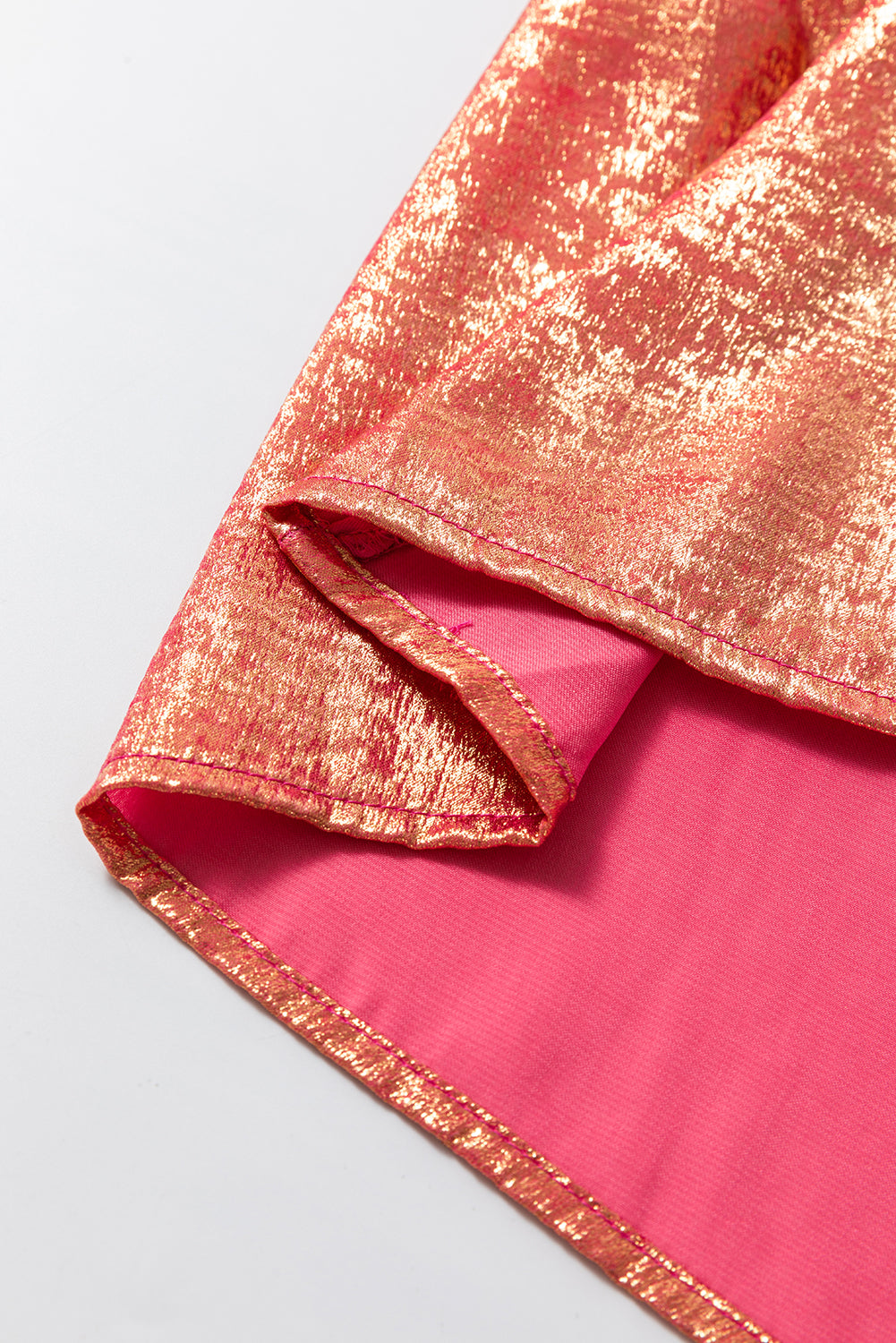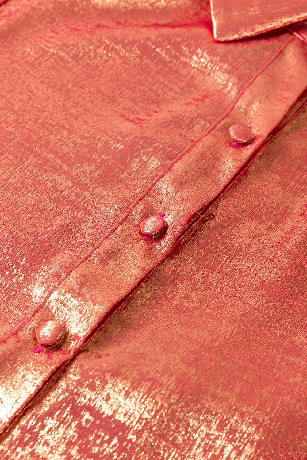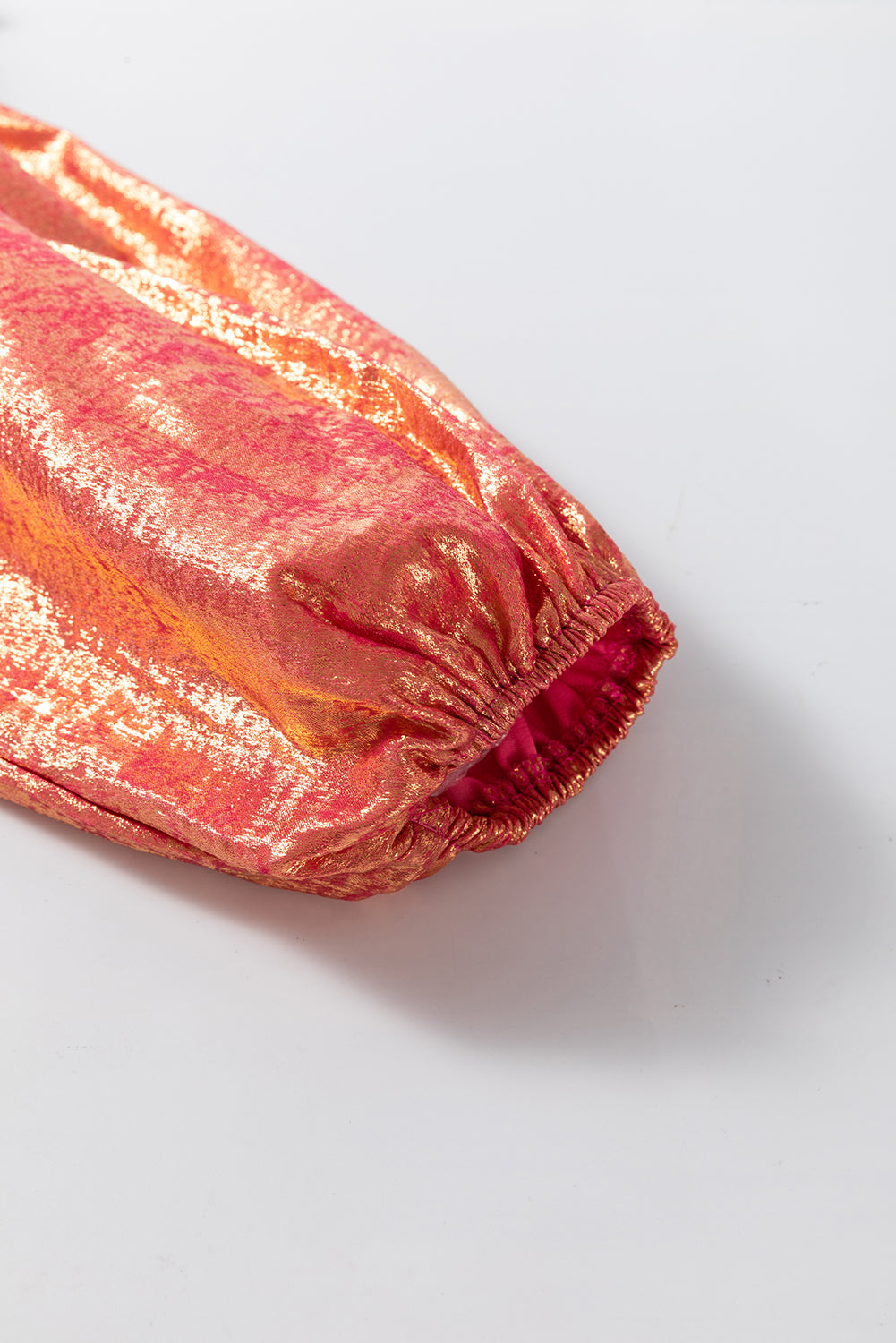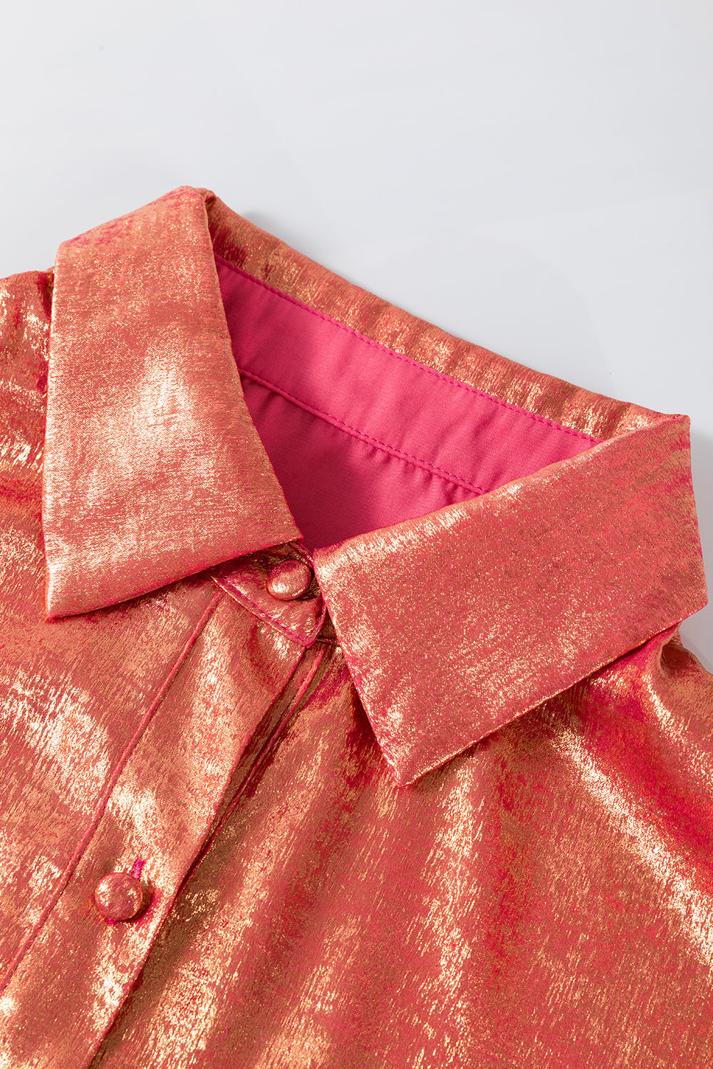 Metallic Sheen Puff Sleeve Mini Shirt Dress Peach