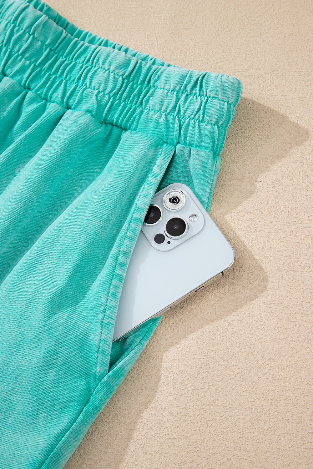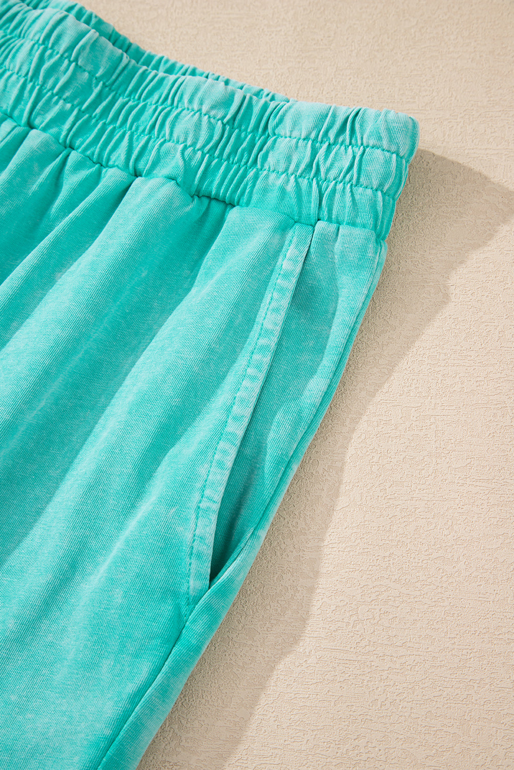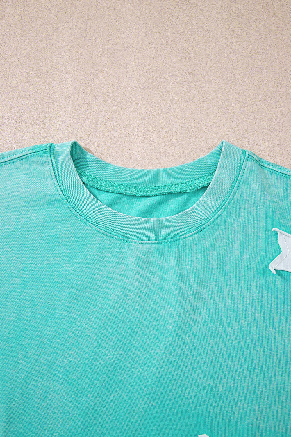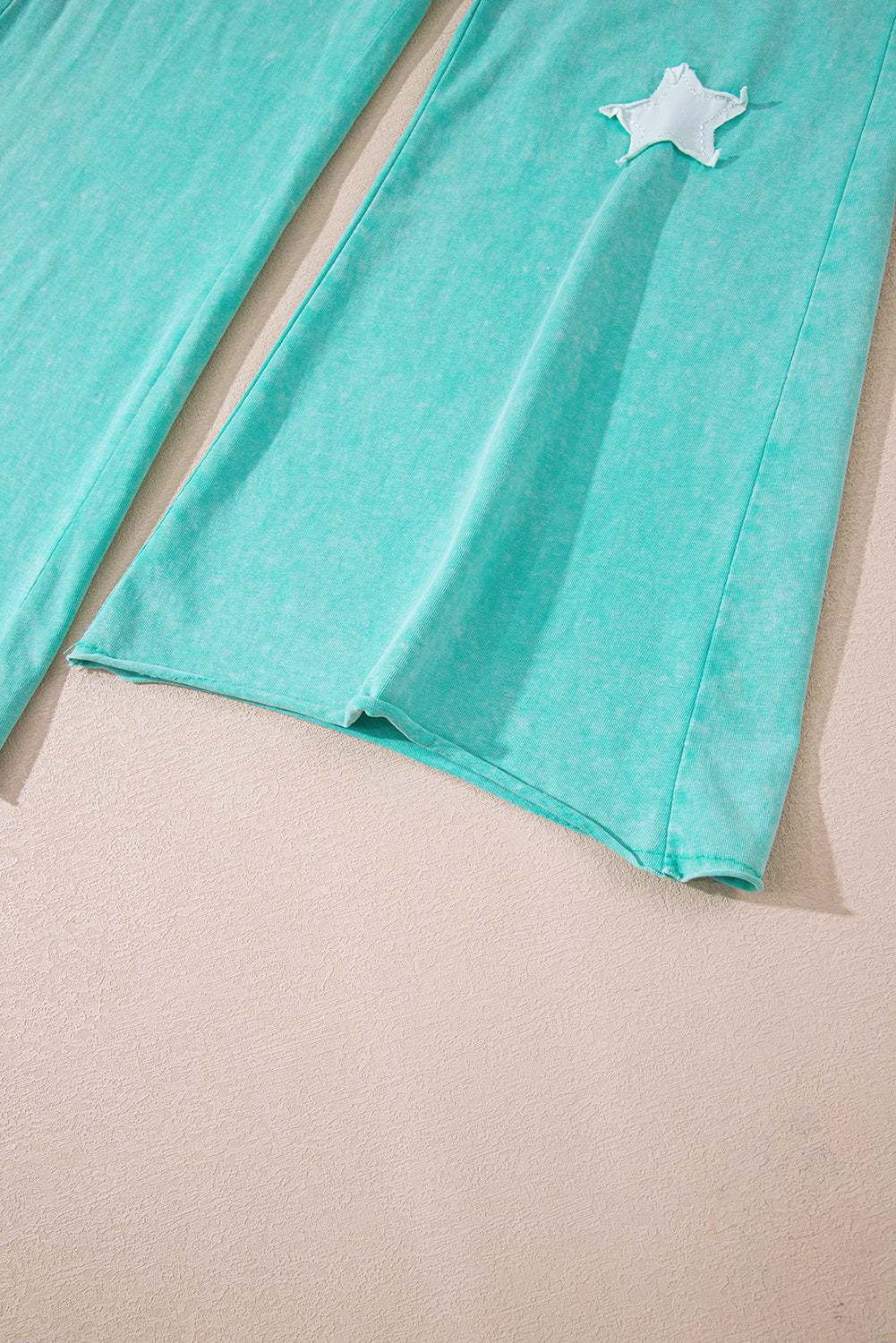 Mint Green Acid Wash Star Patched Rolled Trim Pants Set