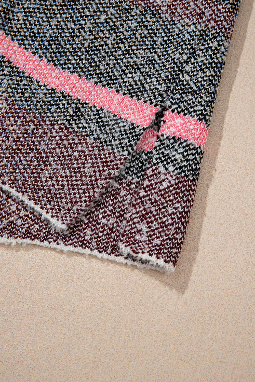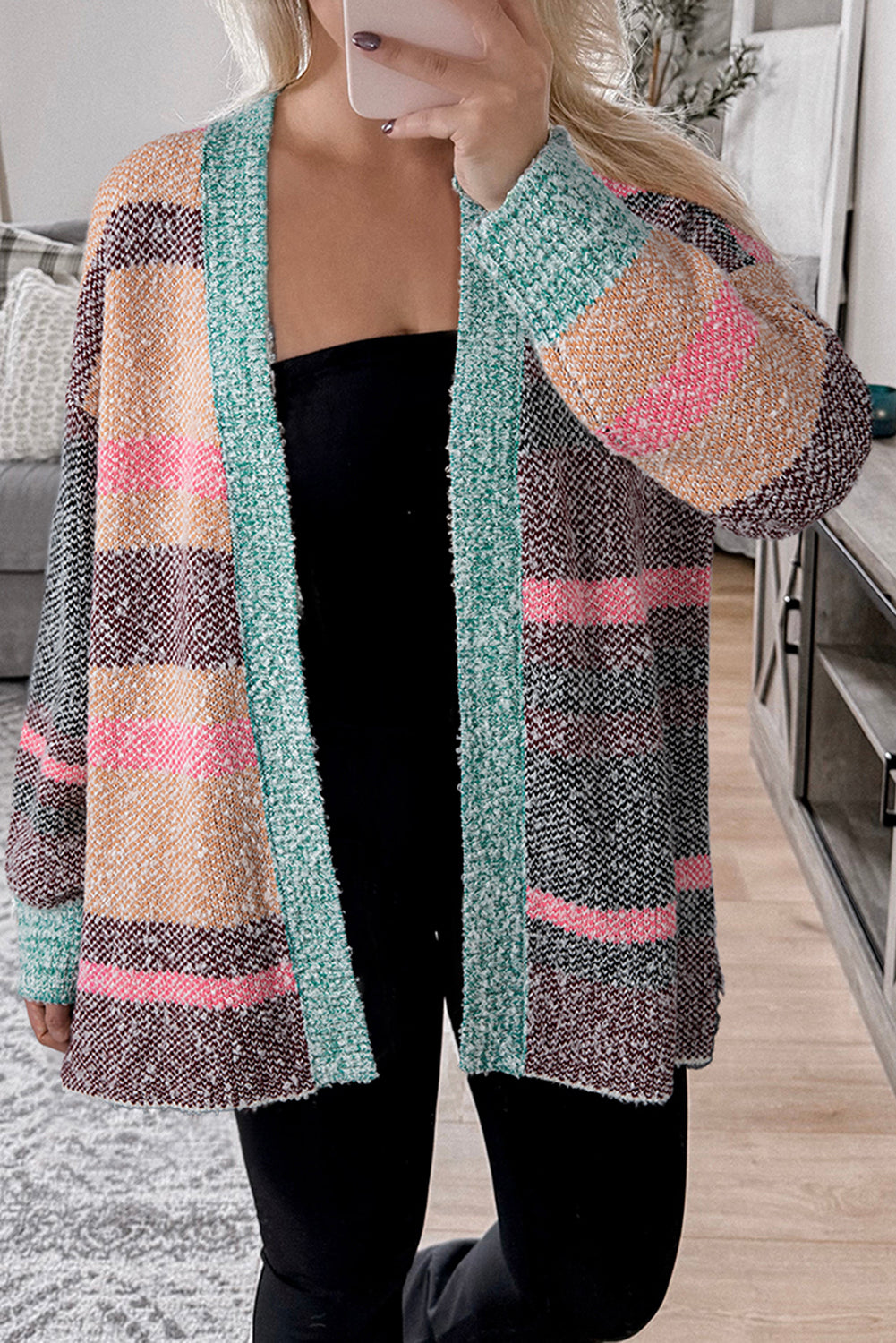 Multicolour Color Block Striped Side Slit Open Front Cardigan