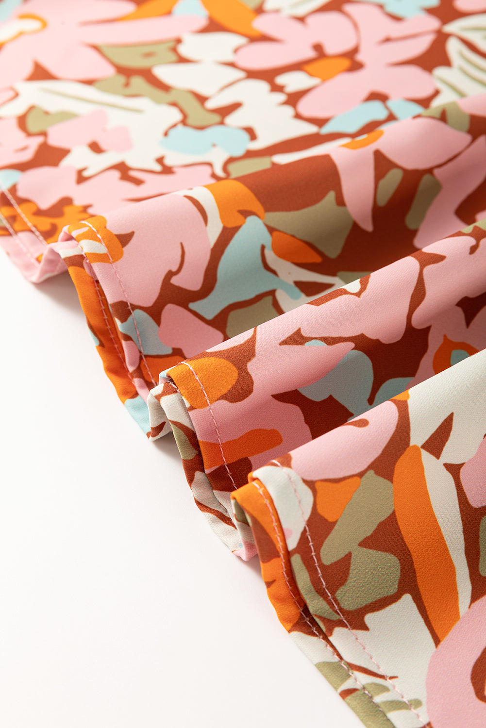 Multicolour Floral Tiered Ruffled Short Sleeve Blouse
