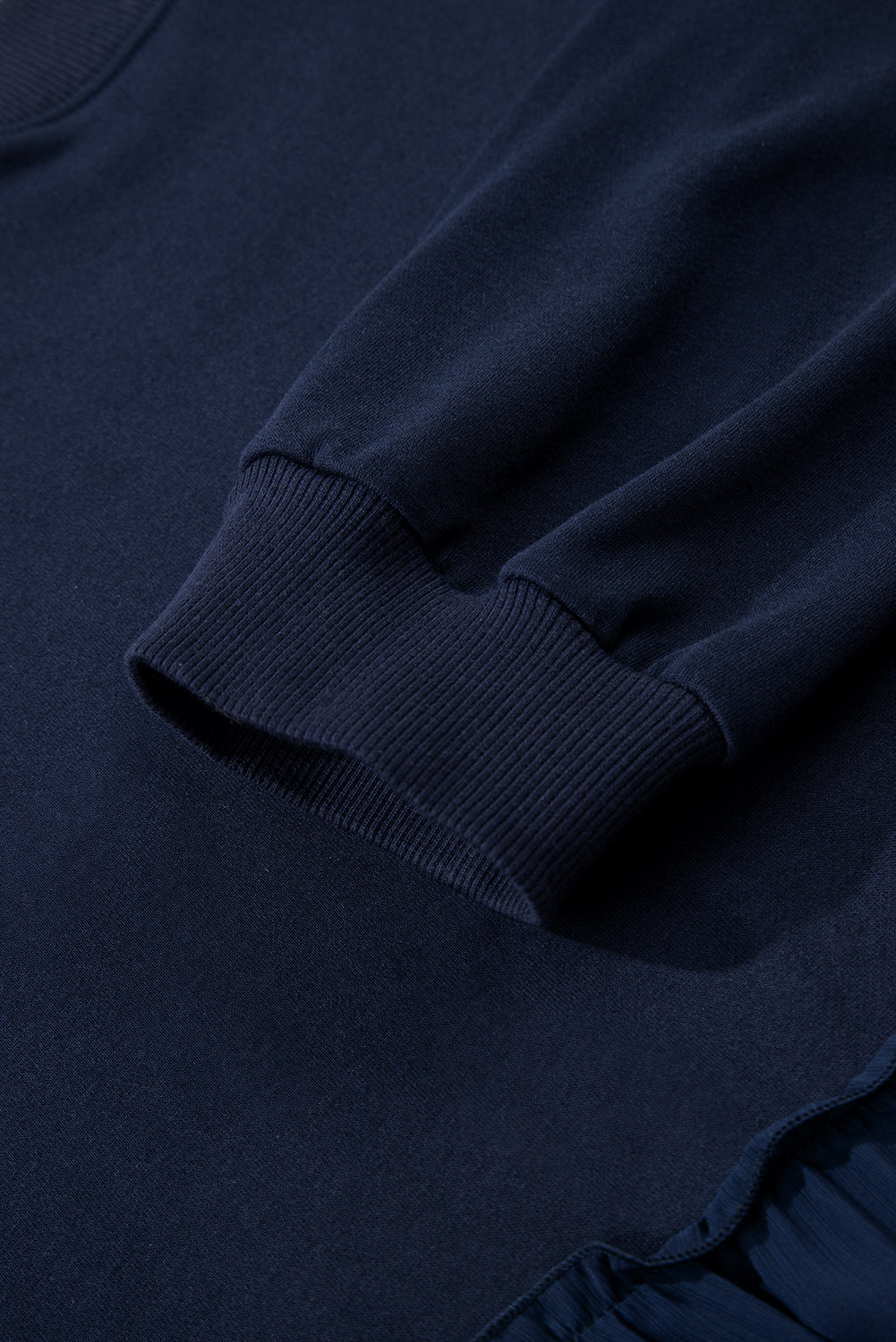 Navy Blue Tiered Ruffle Ribbed Crew Neck Pullover Plus Size Top