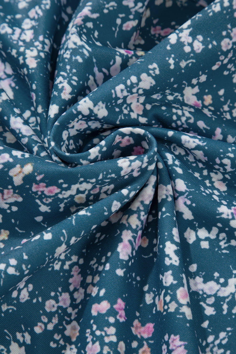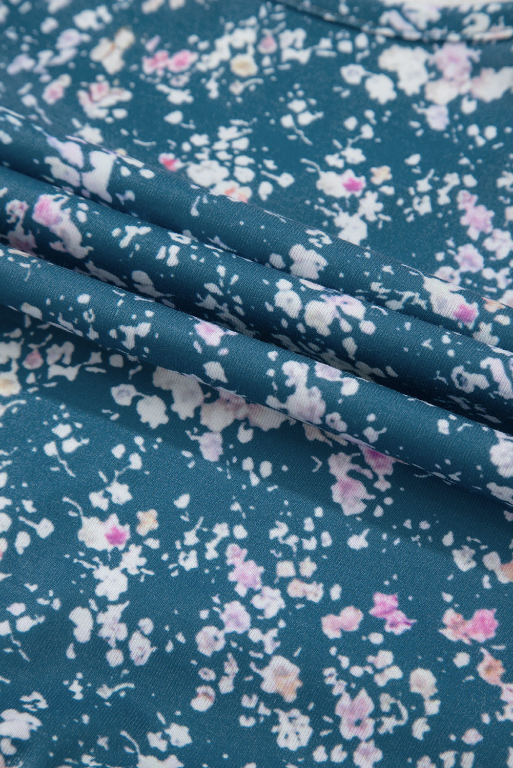 Orange Floral Color Block Patchwork Ruffled Hem Round Neck Blouse