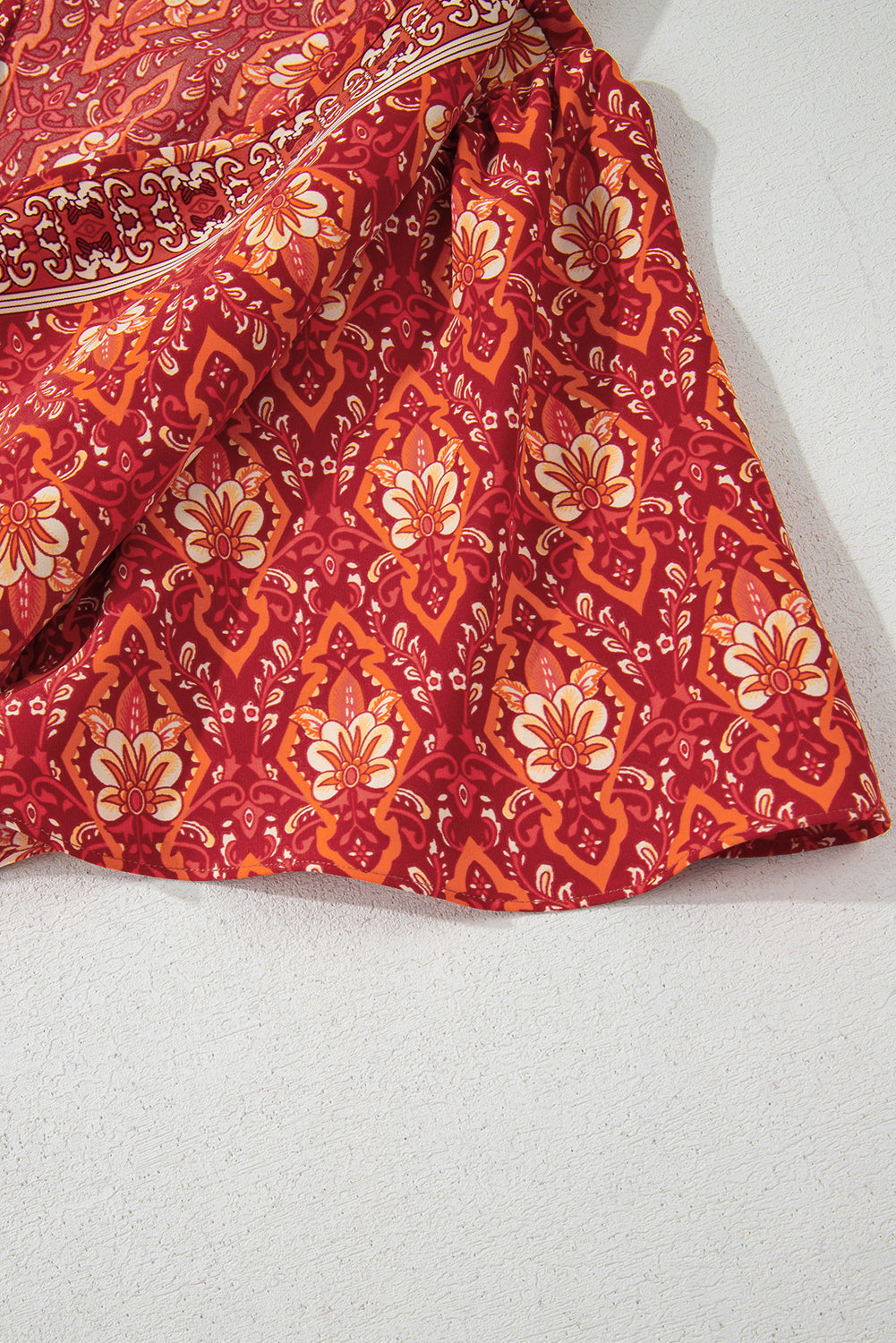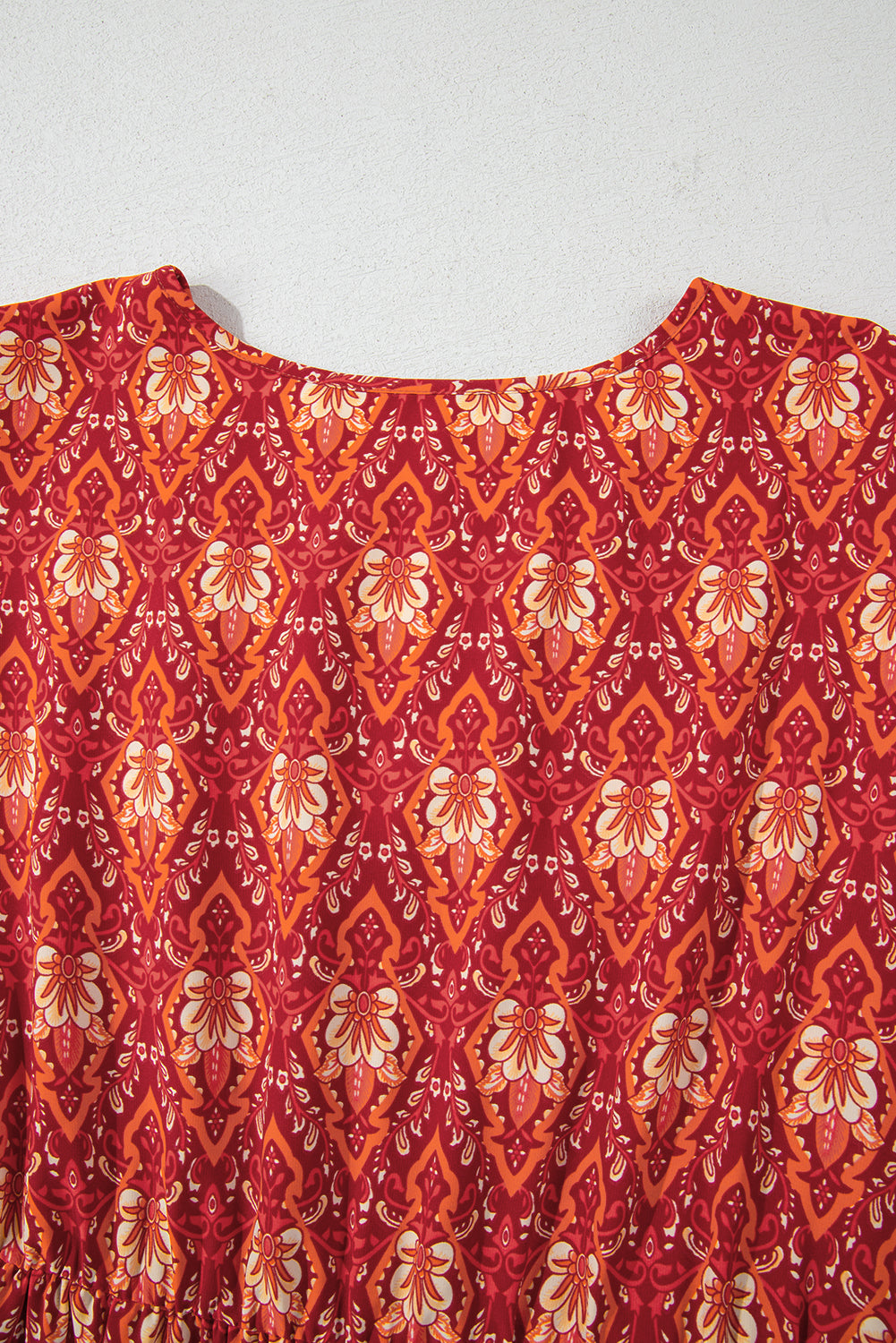 Orange Plus Size Printed Surplice Neck Empire Waist Flowy Mini Dress