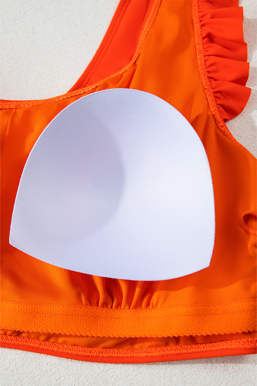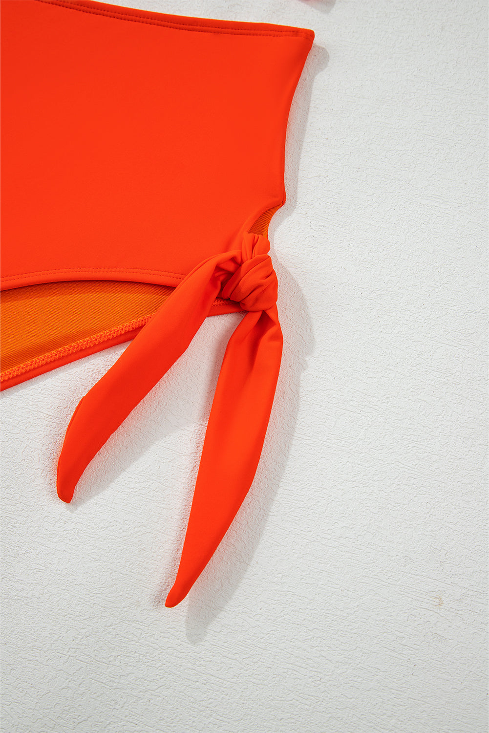 Orange Ruffled Trim Knotted High Waist Plus Size Bikini Set