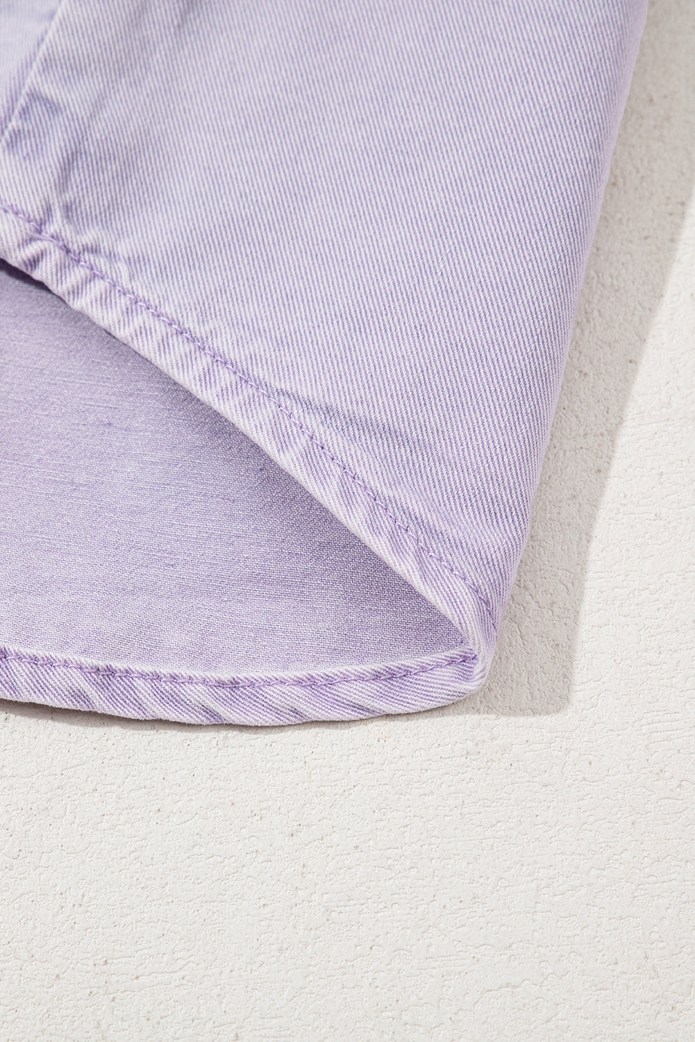 Orchid Petal Short Sleeve Double Chest Pocket Denim Shirt Dress
