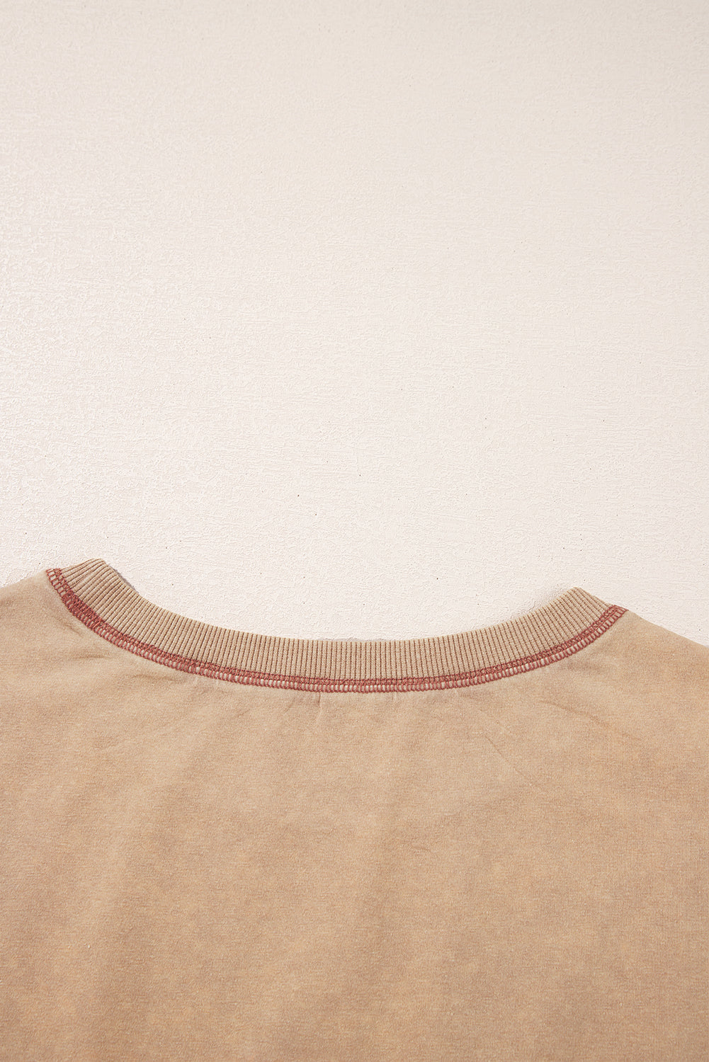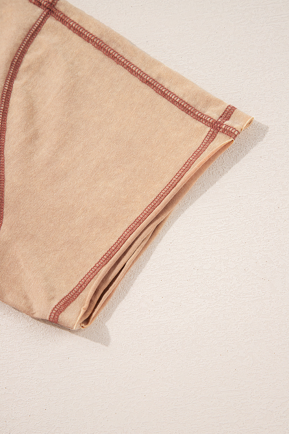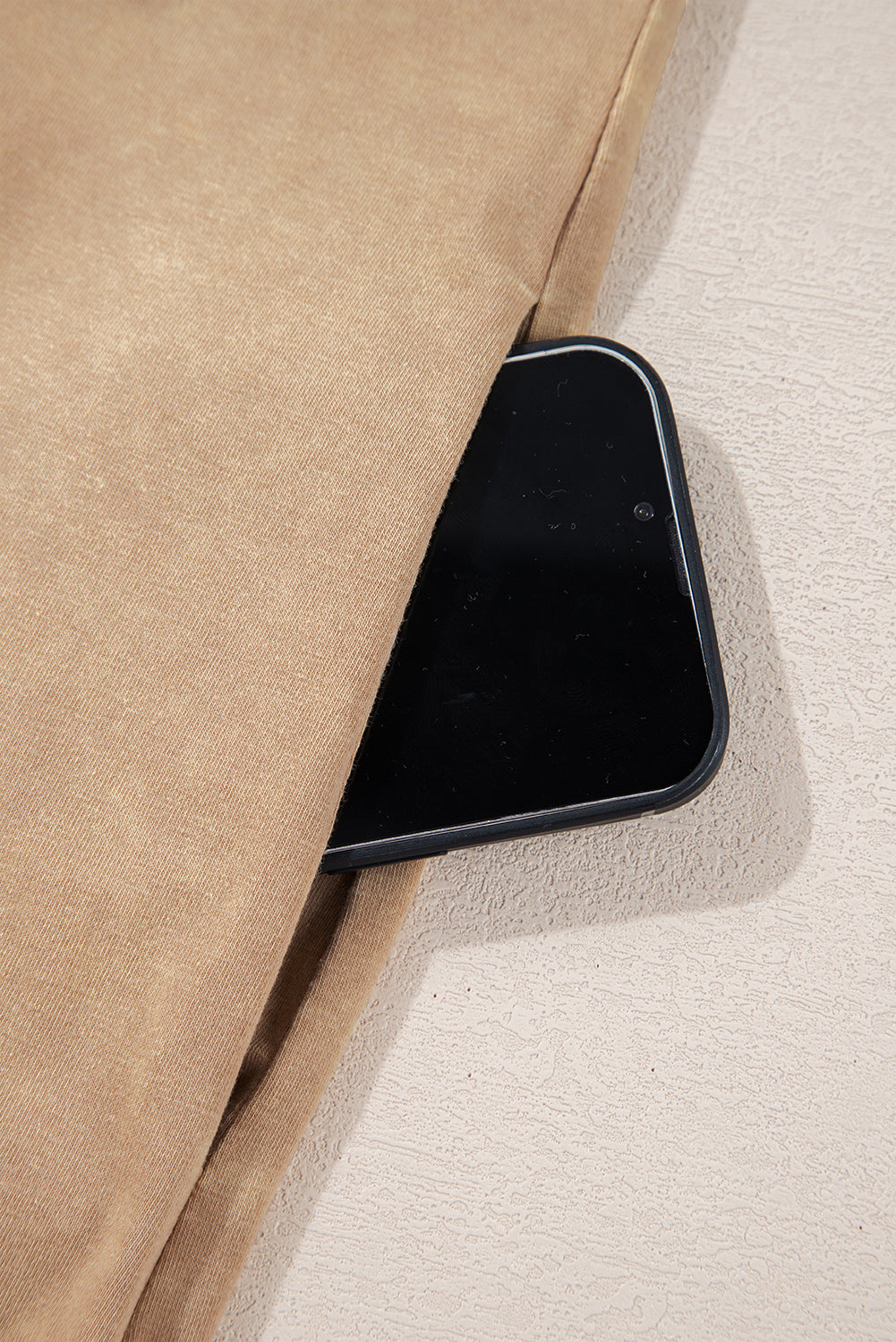Pale Khaki Mineral Wash Stud Beaded Star Graphic Pocketed T Shirt Dress