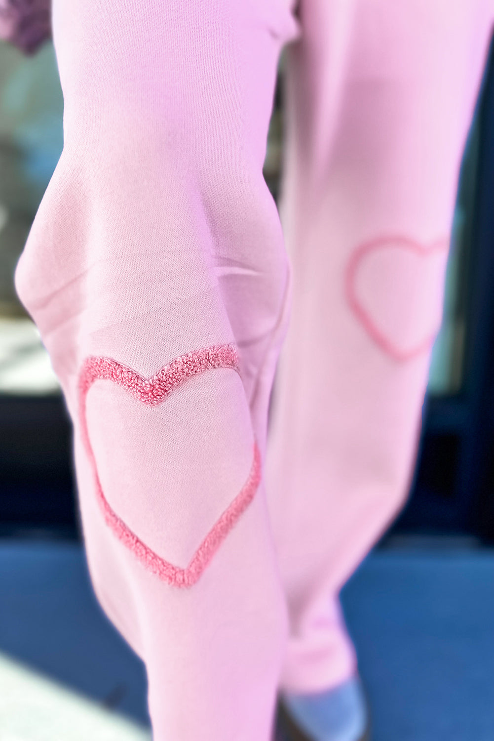 Phalaenopsis Chenille Heart Pattern Casual 2pcs Pants Set