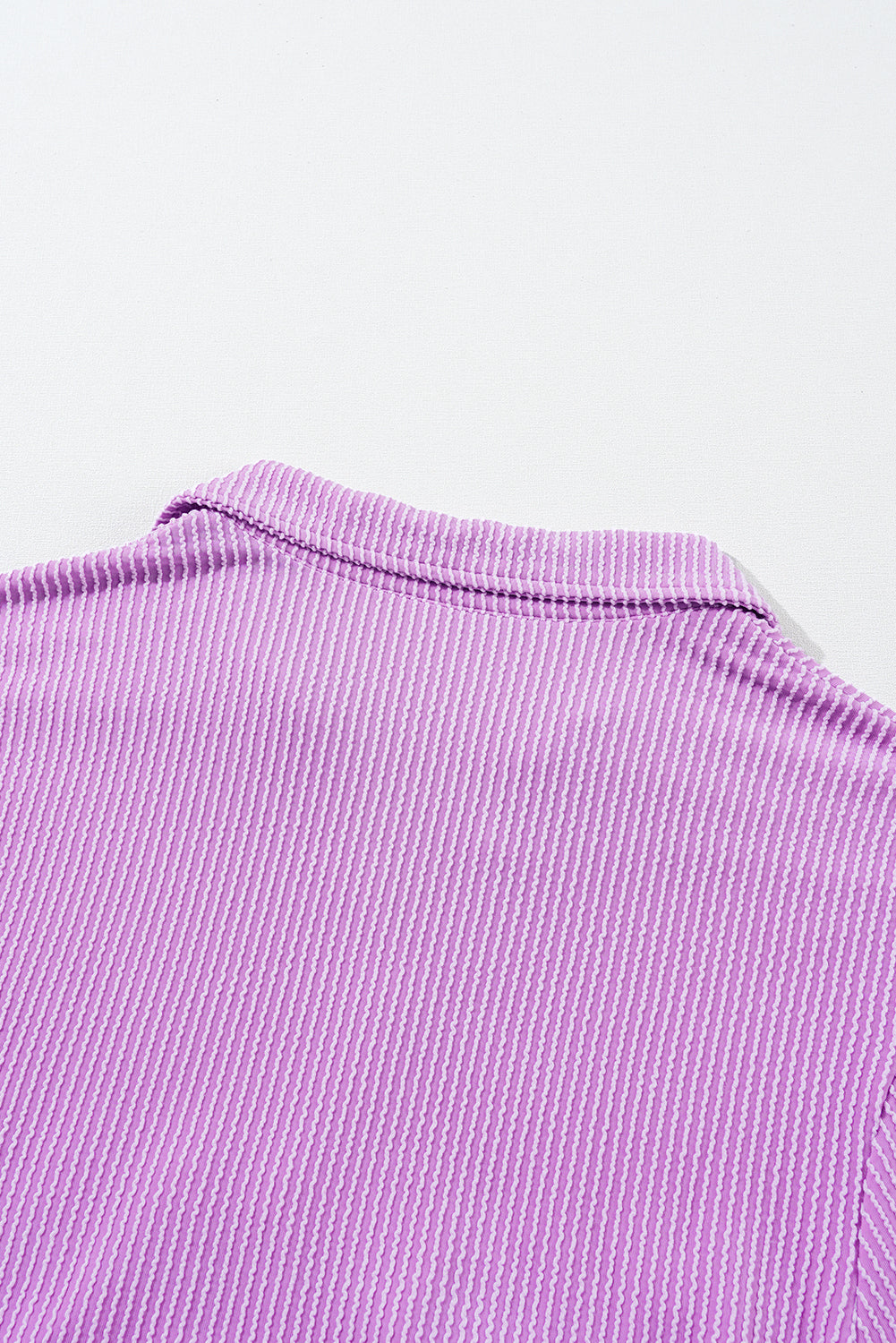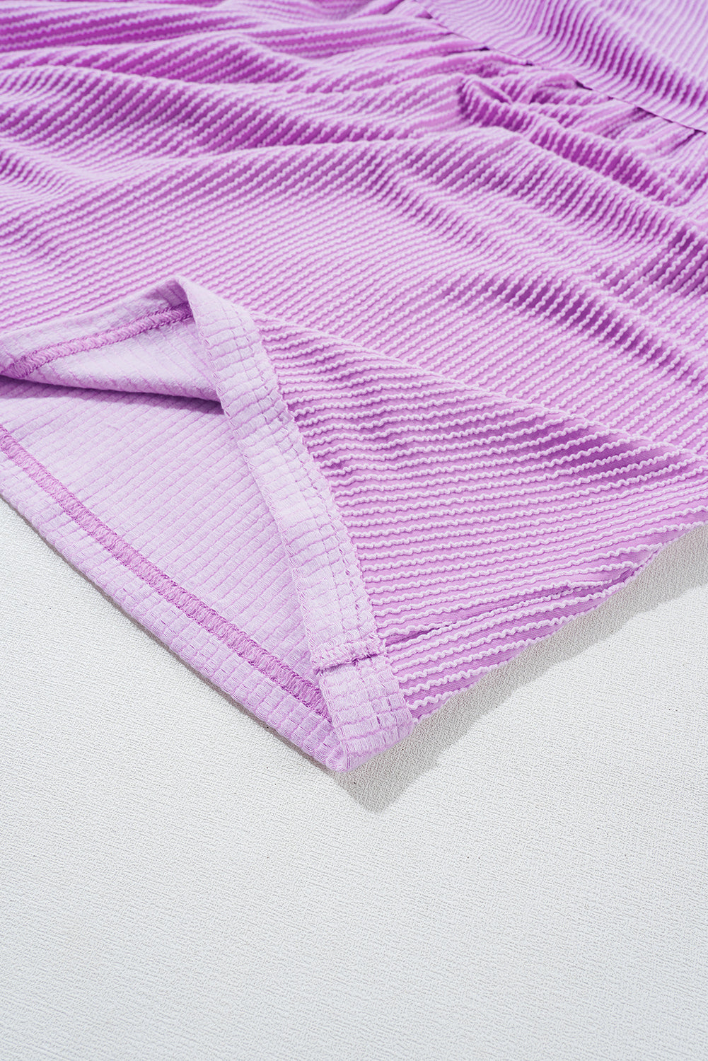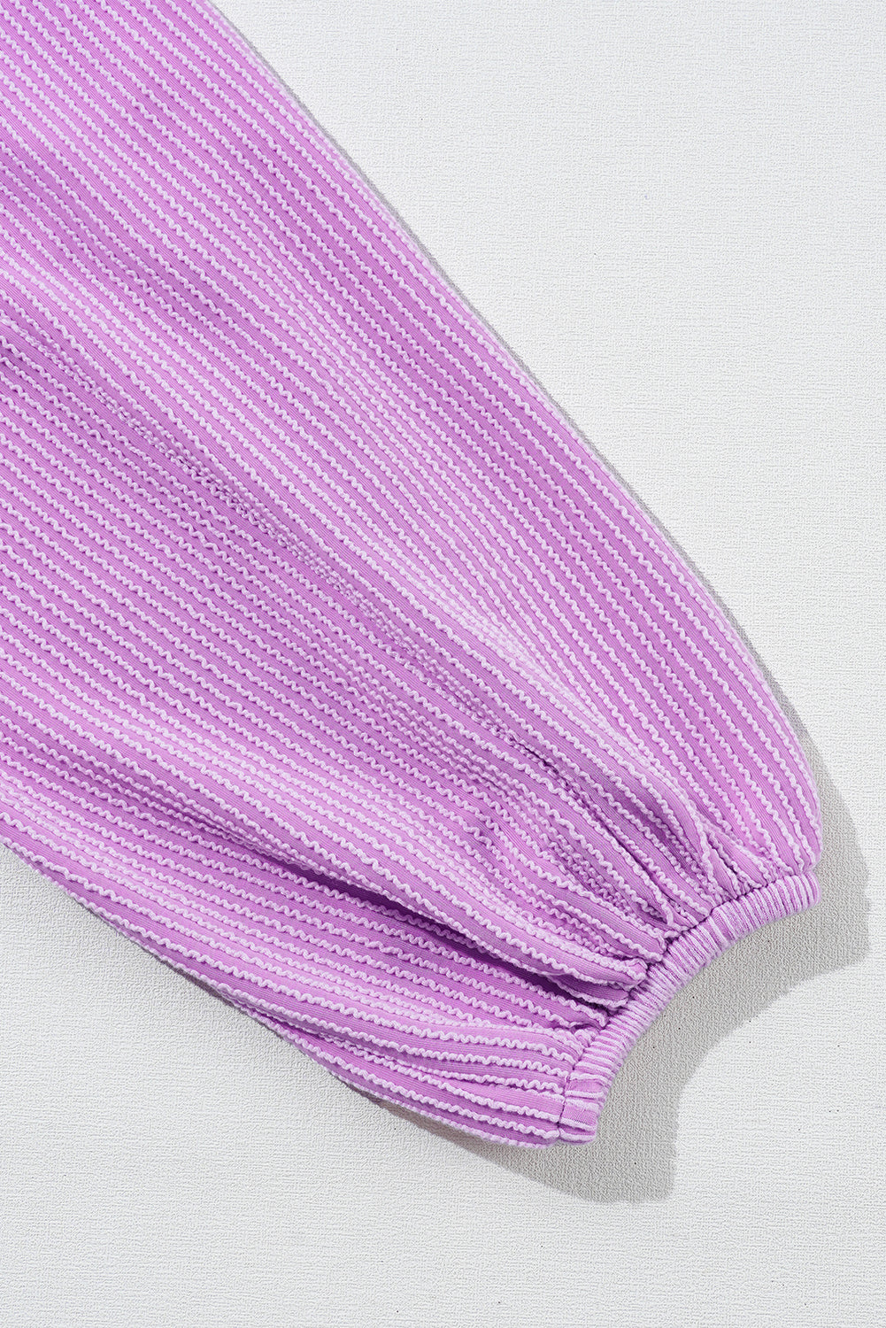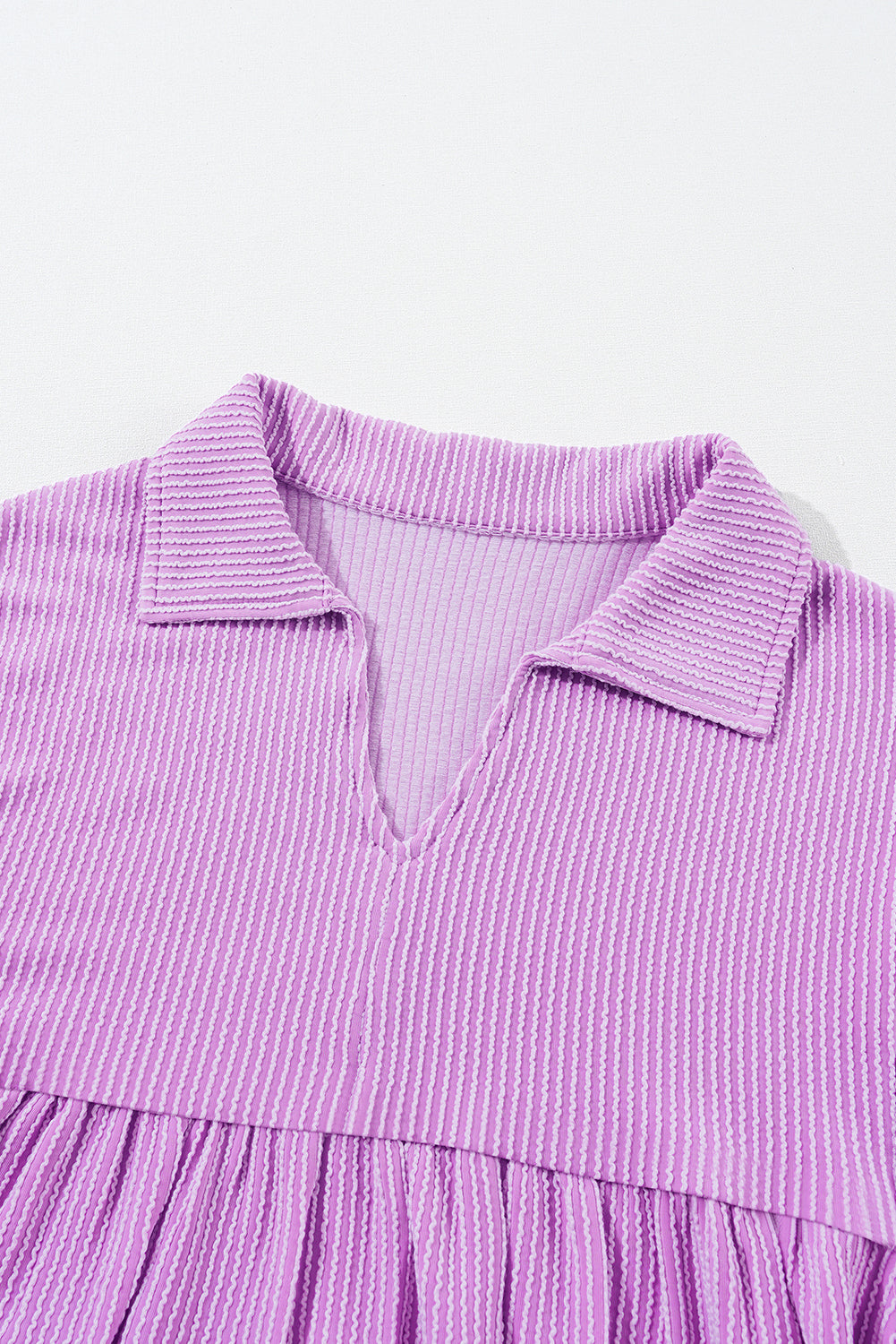 Corded V Neck Bubble Sleeve Babydoll Blouse