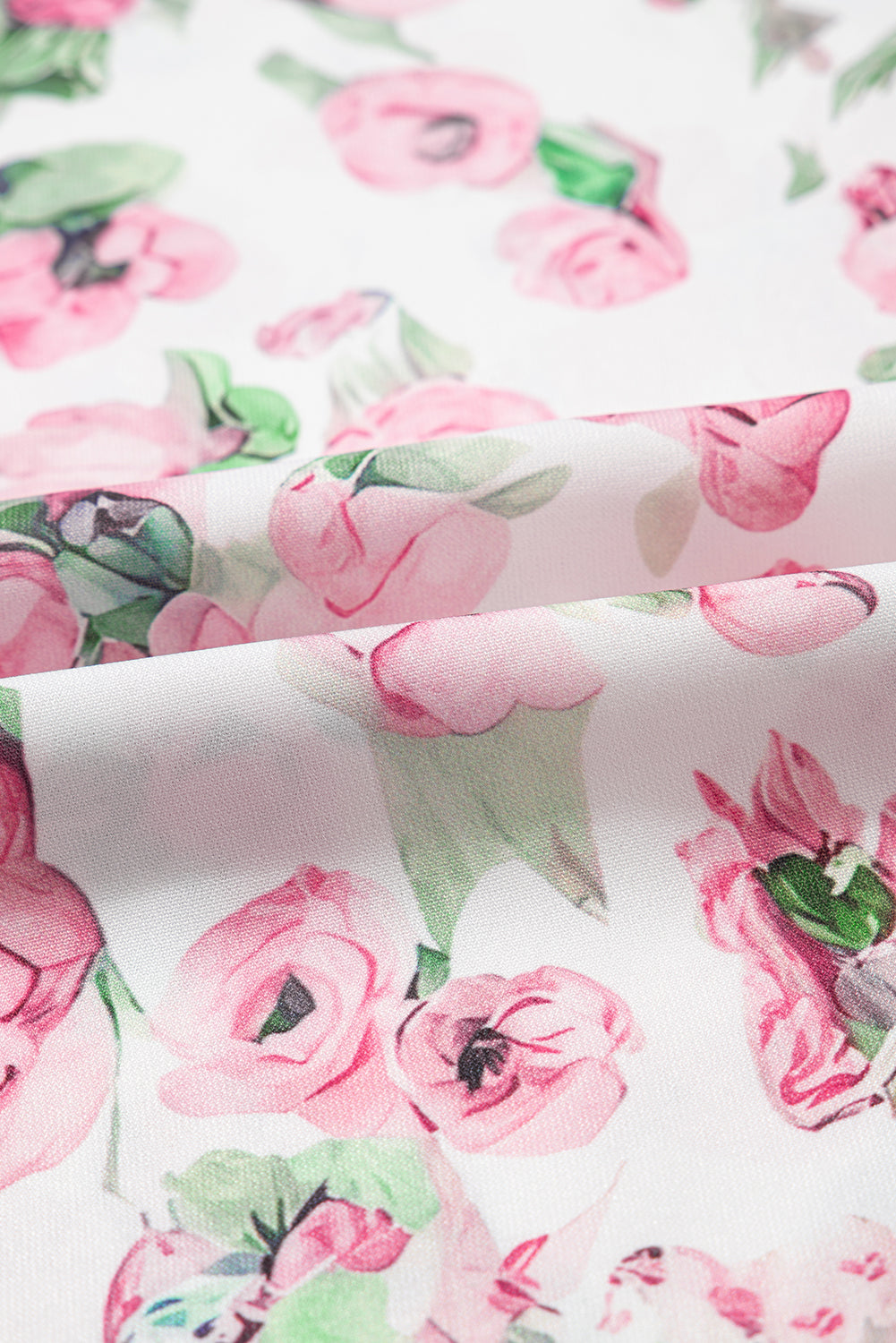 Pink Floral Split Neck Short Sleeve Loose Plus Size Mini Dress