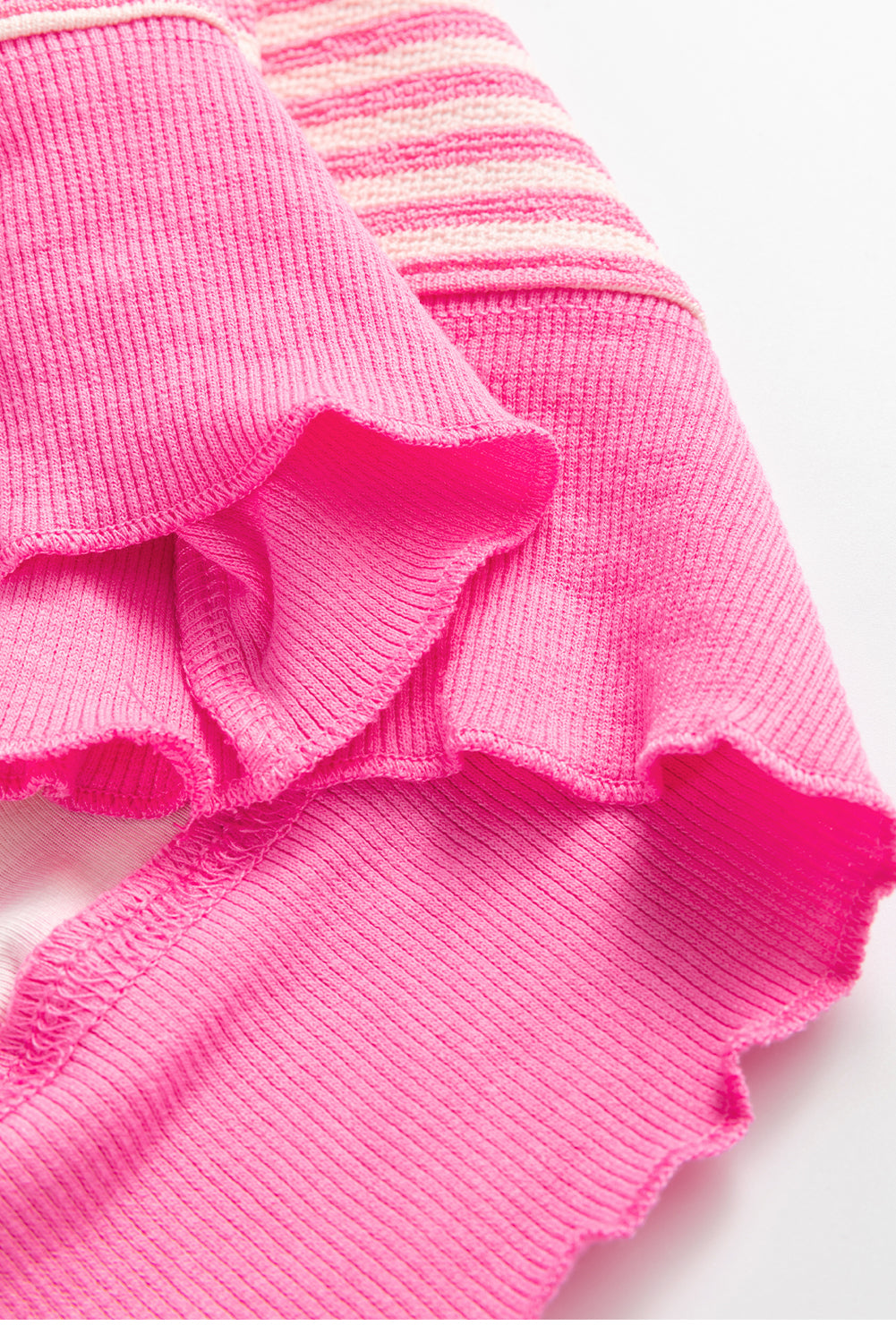 Pink Stripe Loose Drop Shoulder Long Sleeve Top